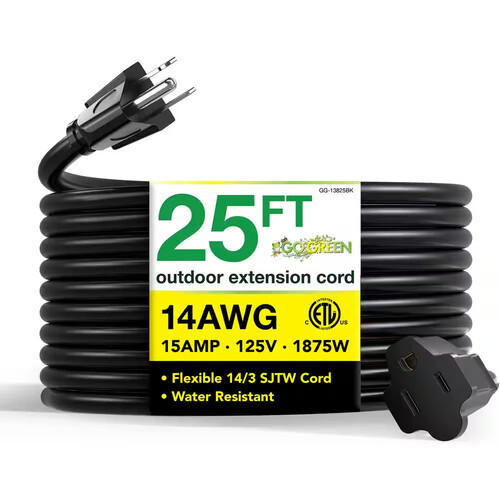 Extension Cord Reel with 4-Outlets 16/3 SJTW and 12A Circuit Breaker, 25-Foot