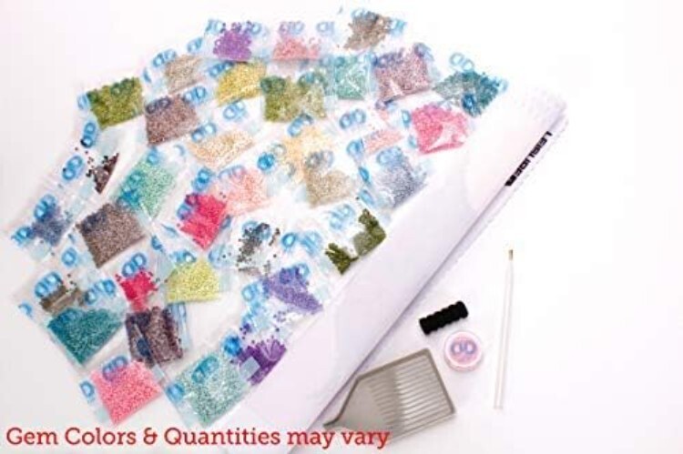 5D Diamond Painting Kits for Adults: Paint-by-numbers using diamond dots on a beautiful printed colorful silk touch fabric canvas; Dots are pre-sorted by color