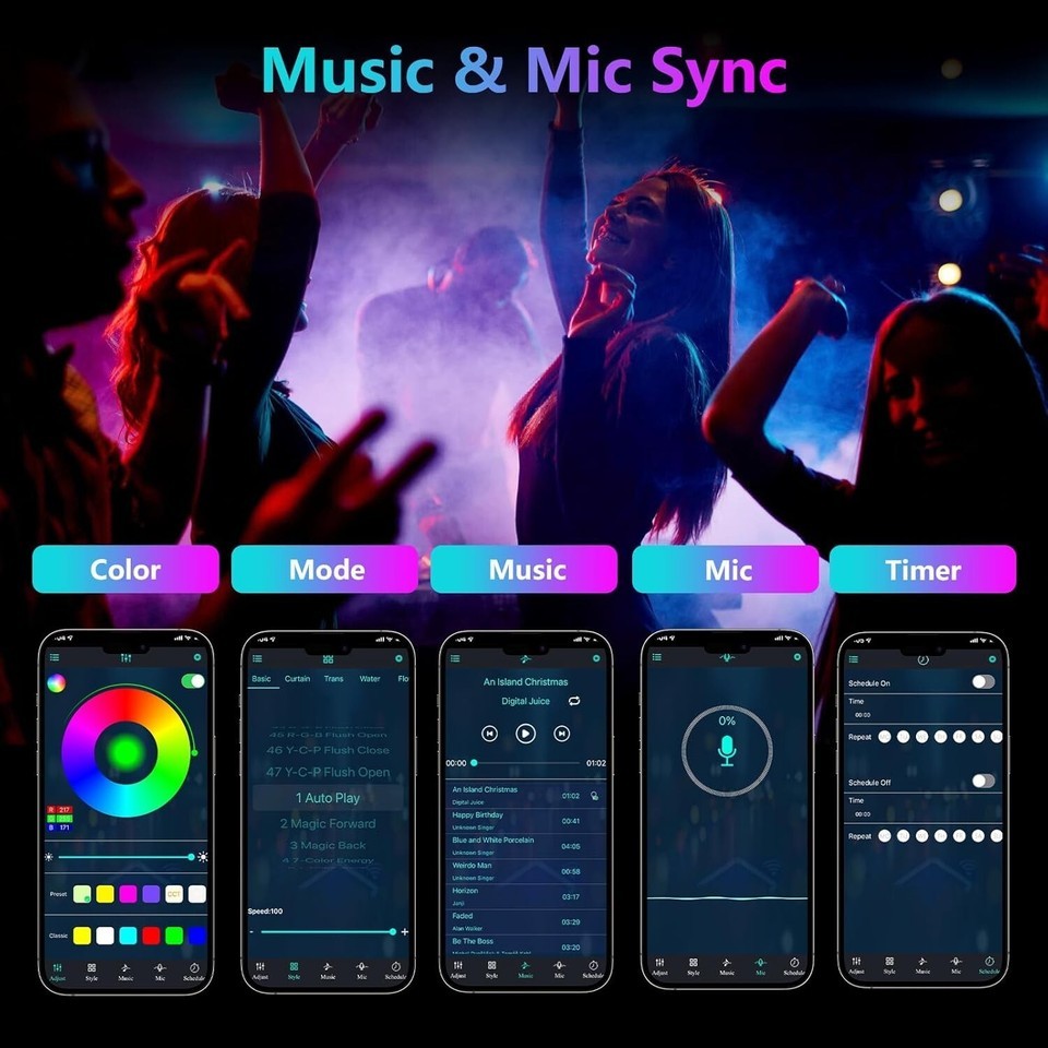 Immersive Music Mic Sync: Effortlessly connected via Bluetooth, elevate your ambience with dynamic lights and gradient effects synchronized to your music and voice, adding vibrancy and energy to your space.