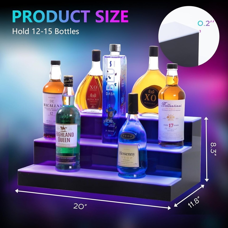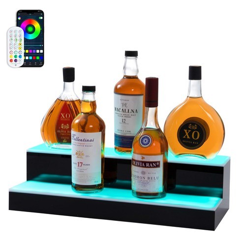 Led Lighted Liquor Bottle Display Shelf, 20 Inch 3 Tier Whiskey Rack, Support...