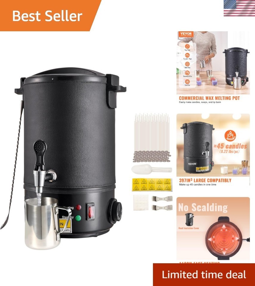 Liter Commercial Wax Melting Pot If you're in the market for an efficient wax melting pot to produce a large quantity of candles, look no further than our high-capacity commercial wax melting pot. With a powerful 1100W motor, this machine can handle even the most demanding of wax melting tasks with ease and convenience.