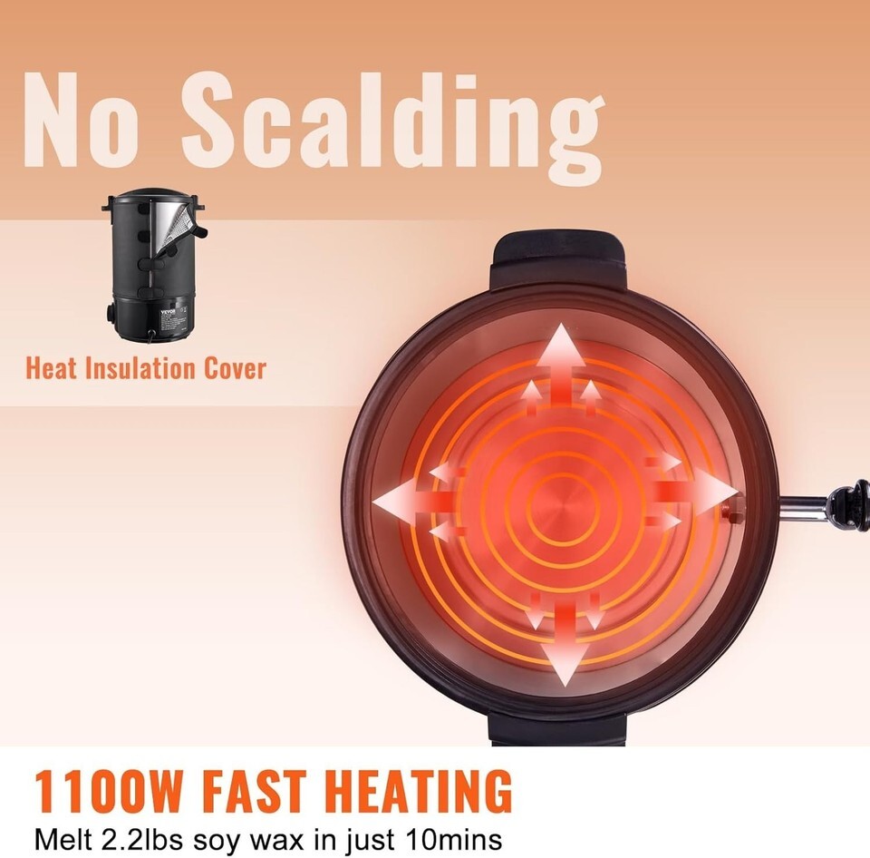 Fast Heating: This wax melting pot with easy pour spout can quickly heat and melt wax with 1100W power and a large-area coil heating system. Our candle making kit takes only 10 minutes to melt 1kg of soy wax, making it an excellent choice for those who need to create candles in bulk with maximum efficiency.