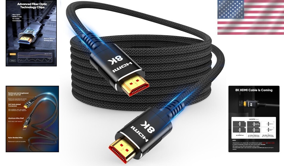 Durable 8K HDMI 2.1 Braided Cable 100FT - and 23 similar items