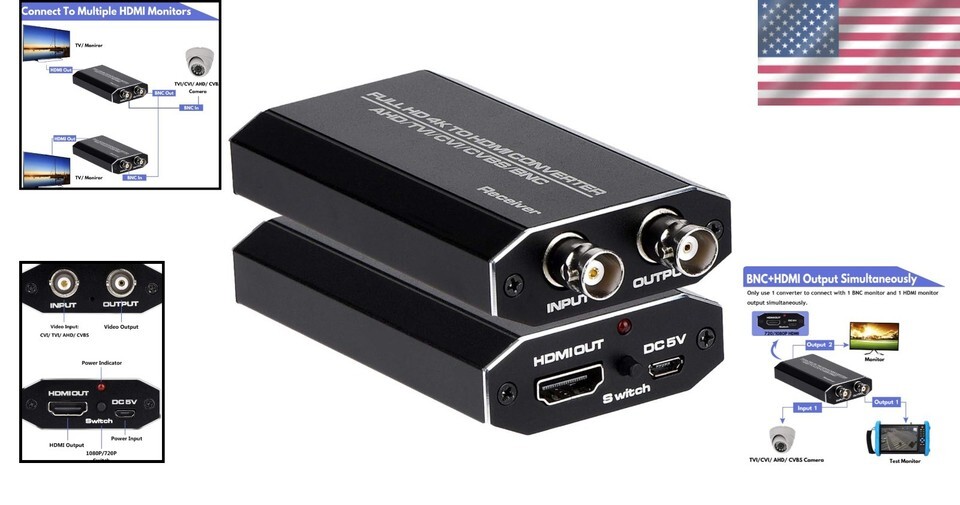Full HD TVI/CVI/AHD to HDMI Converter, 1080P BNC Video Adapter for Monitors