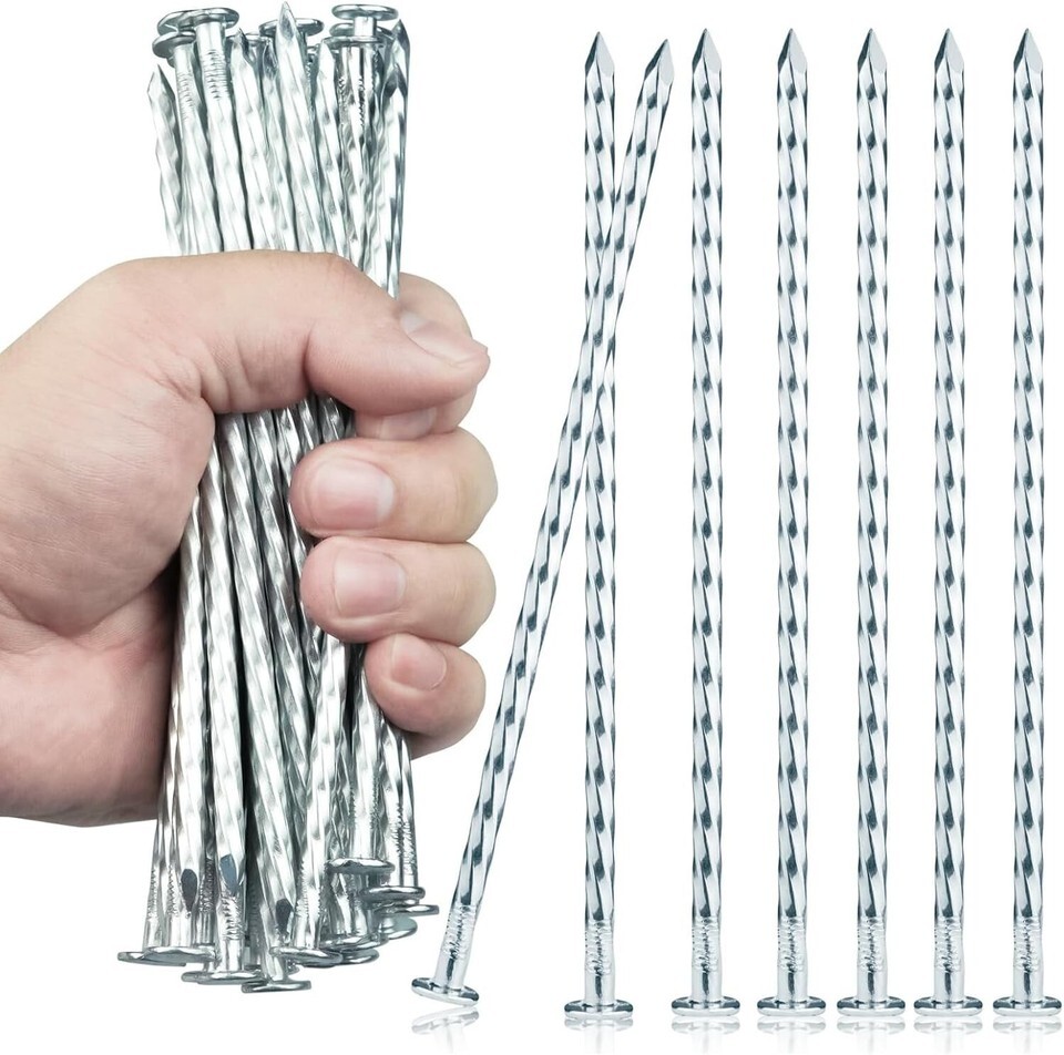 Galvanized Heavy-Duty Landscape Stakes, 300-Pack Spiral Metal Turf Spikes for Artificial Grass, Paver Edging, Weed Barrier, Securing Fences and More