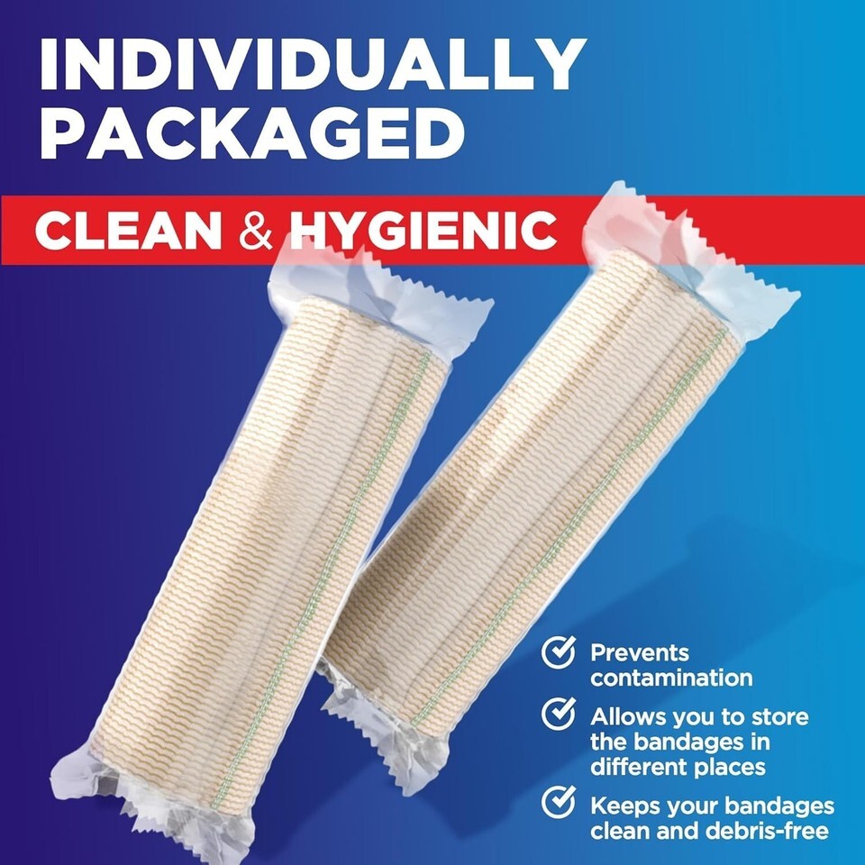 INDIVIDUALLY PACKAGED ? Each crepe bandage is enveloped in a protective wrapper. This keeps your compression bandages clean, hygienic, and debris-free until you?re ready to use them.
