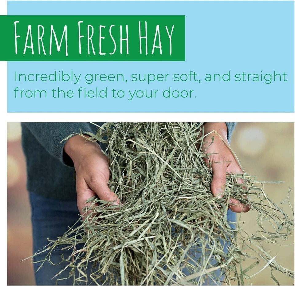 Minimally Handled Delivered Fresh - Make it easy to provide exactly what your little friend needs with regular shipments of fresh from the farm hay to wear down growing teeth and protect digestive health. Each delivery of premium Timothy hay for rabbits, guinea pigs, and chinchillas includes a great mix of protein, fiber and fat to keep them healthy. Your small pet may not thank you with words, but happy oinks and binkies will make you feel like the pet owner of the .