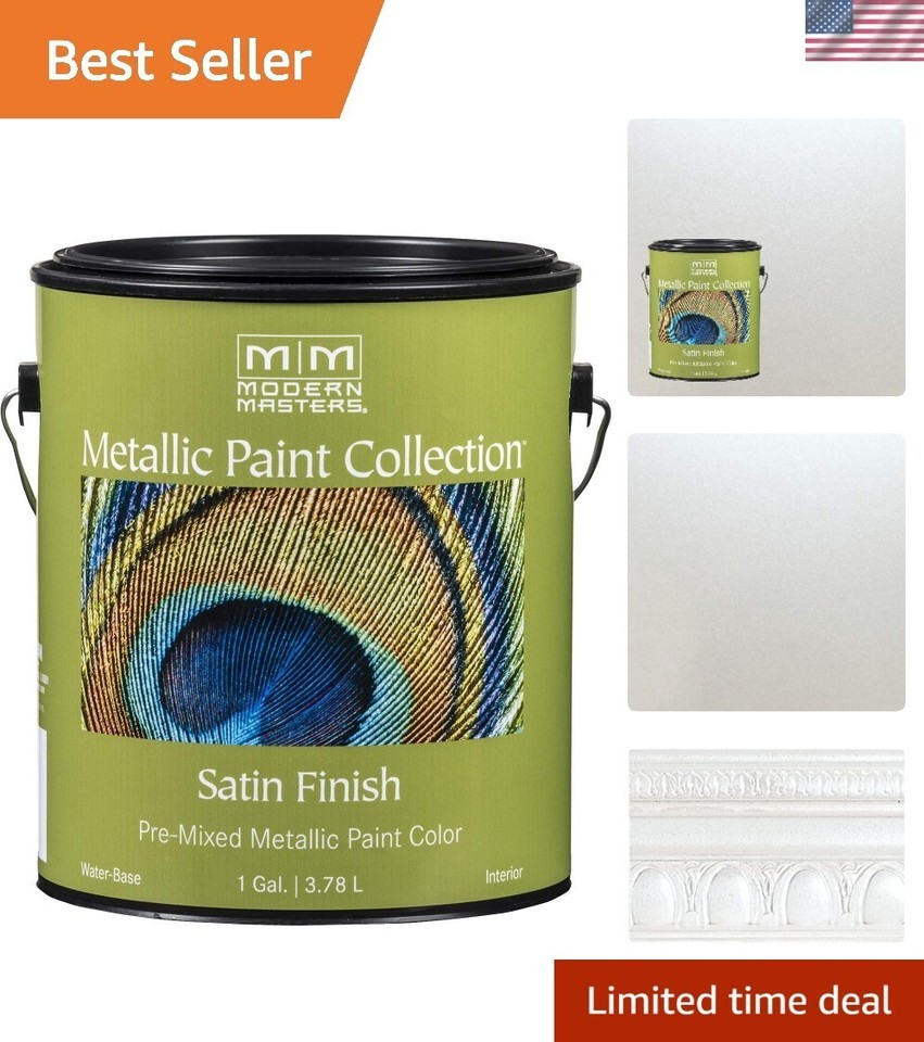 1 gal ME196 Pearl White Metallic Paint Collection, Satin Water-Based Decorati...