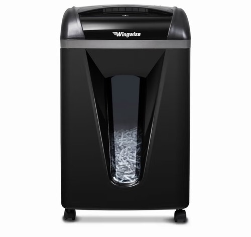 Shreds up to 24 sheets of 20-pound bond paper at a time; also destroys CDs, DVDs, credit cards (one at a time, through dedicated slot), staples or small paper clips