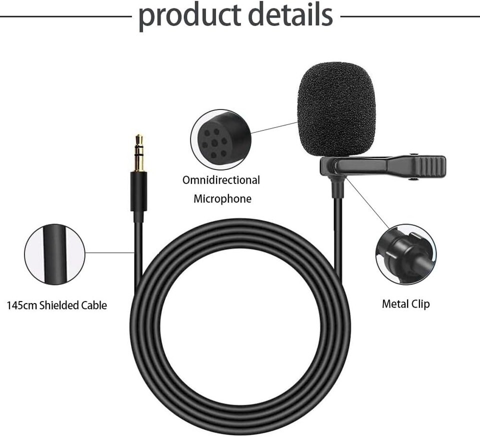 3.5mm Car Microphone for Car Stereo Universal Portable 5ft Lavalier Clip Mic ...