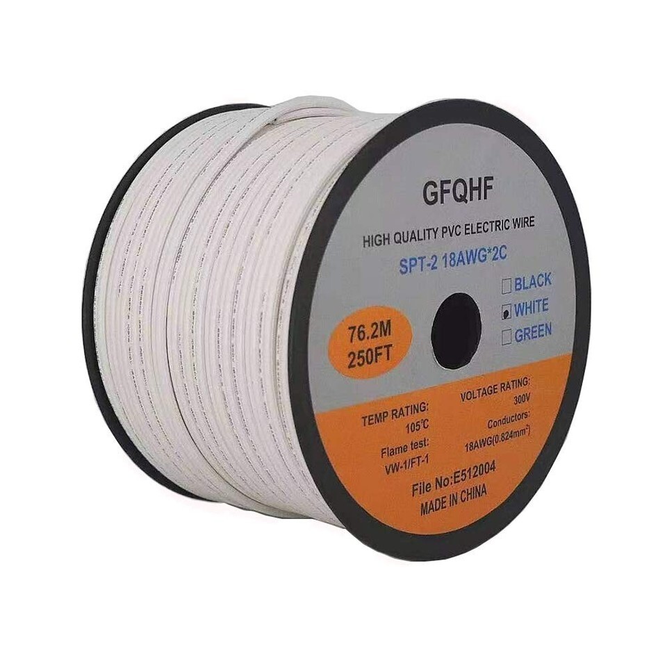 250FT White SPT-2 Zip Cord Wire 18/2 Extension Electrical Cable, UL Listed 18...