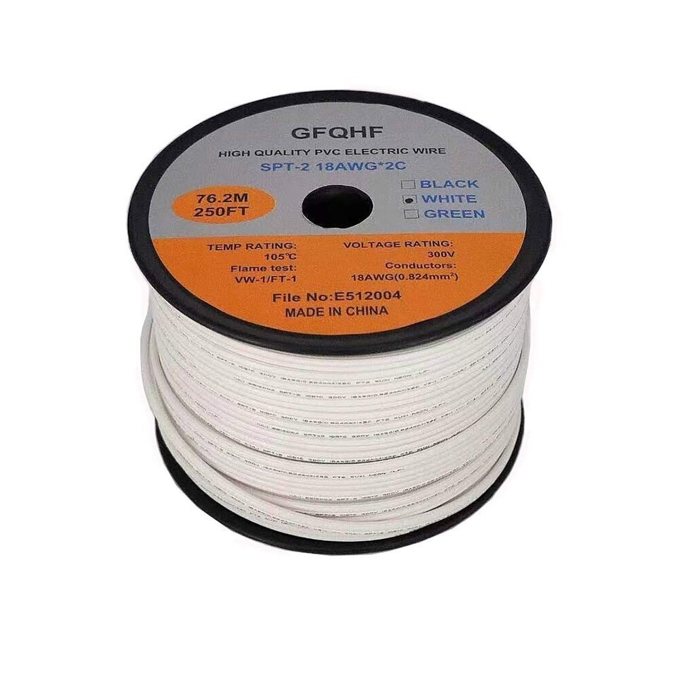 DIMENSIONS AND SPECIFICATIONS: 250FT SPT-2 White Wire,UL listed. The outer layer of the wire is made of pvc material, which has a good insulation effect