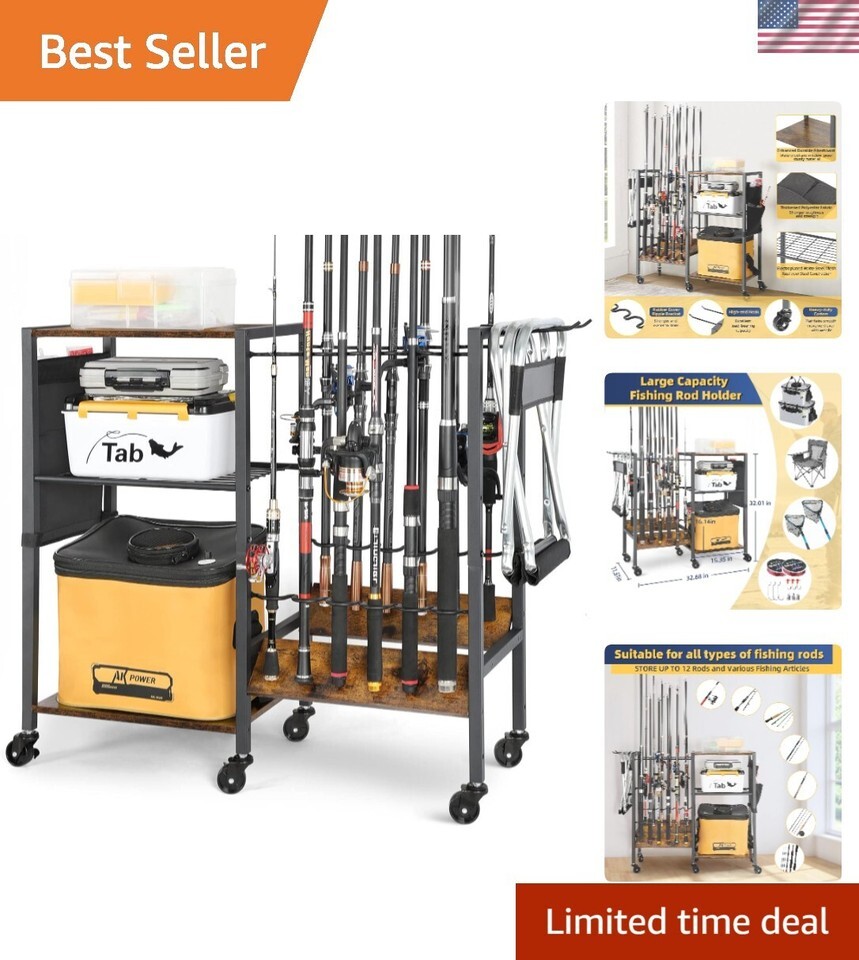 Store Various Fishing Rod: Highly functional tackle storage cart that accommodates up to 12 fishing rods. The Ripple Bracket for easy access keeps your fishing rod and reel combos neat. The innovative design allows the placement of fishing rods up to inches in size