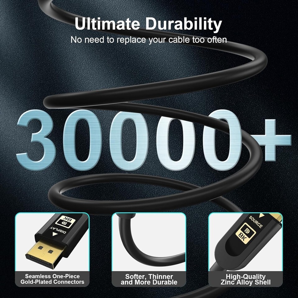 Easy to Use and Durable: DP cable is plug and play, no drivers or adapters needed. It has one-way transmission, so make sure you connect the "SOURCE" end to your device (PC, laptop, graphics card, etc.) and the "DISPLAY" end to your monitor, TV or projector. It has gold-plated connectors that resist oxidation and corrosion for long-lasting performance.
