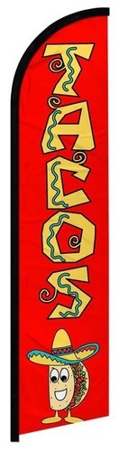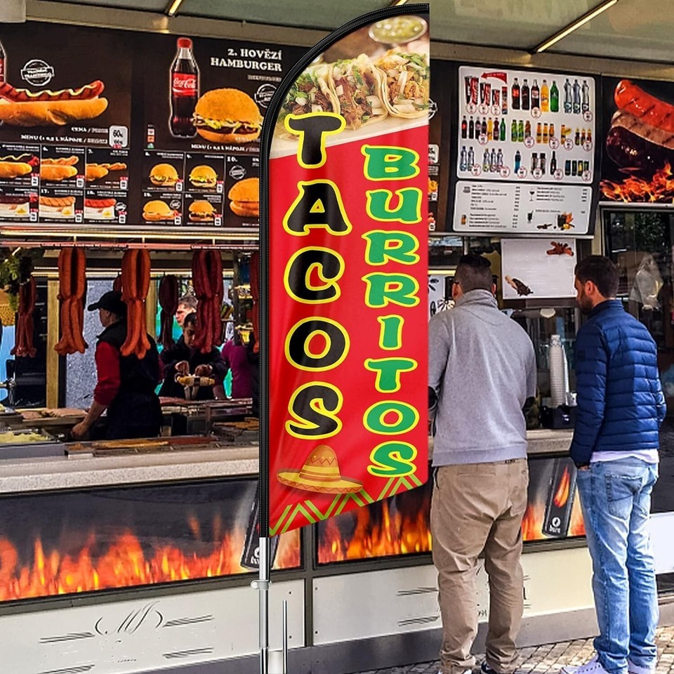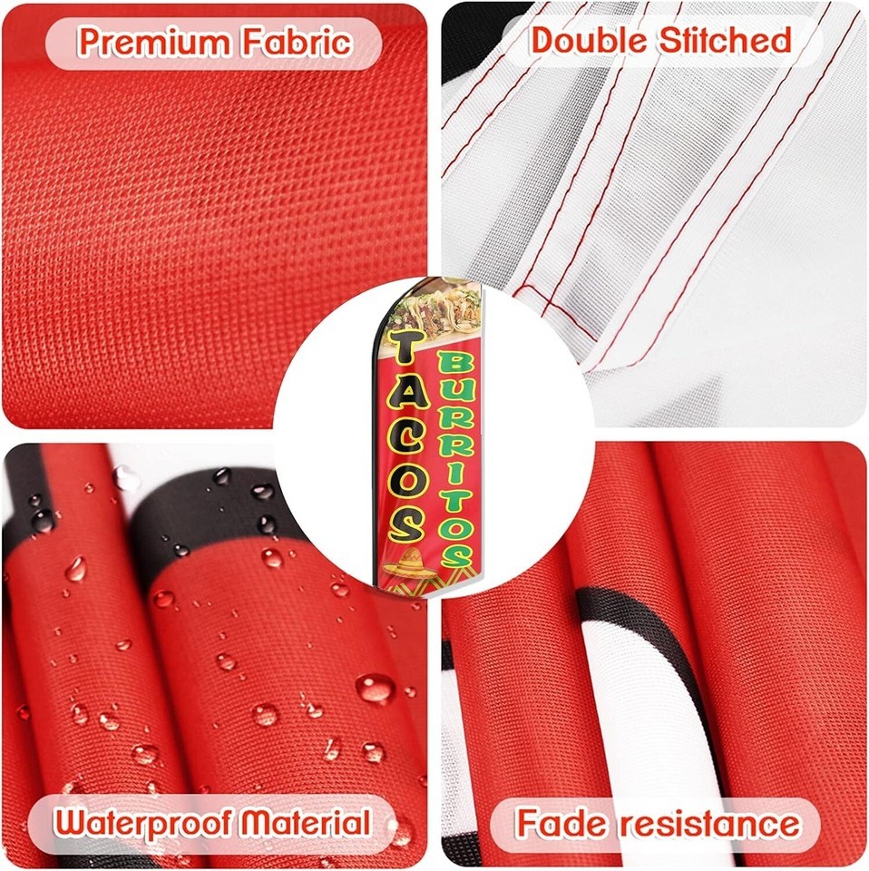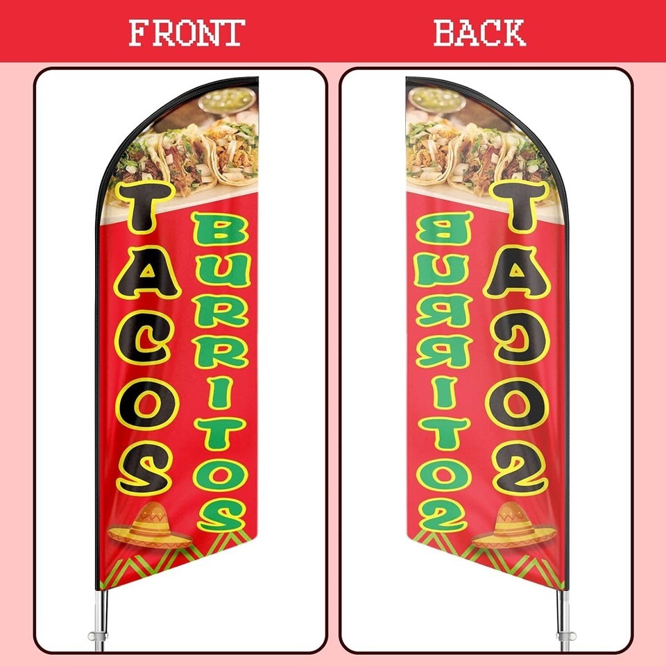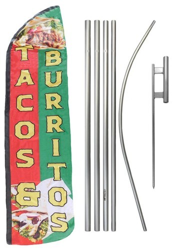 Tacos Burritos Flag, 11FT Windless Mexican Food Swooper Feather Flag with Alu...
