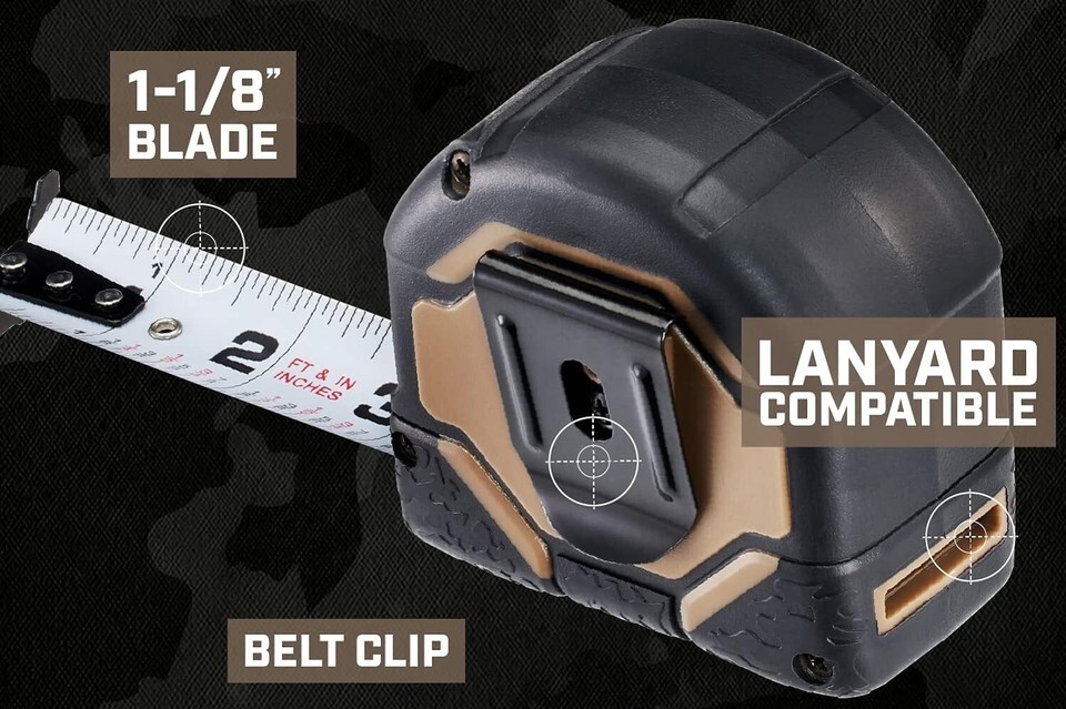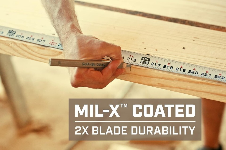 Military-grade composite case that?s up to 20% more compact than the rival tape measures, the 25? Tape Measures packs a lot of precision in the palm of your hand. The 1-1/4? MIL-X coated blade offers up to 2X durability while providing the highest visibility and contrast with a bright, white blade for precise measurement reading and marking in dark spaces. The MIL-X blade also has double-sided markings for taking measurements overhead or in hard to reach spots. This tape measure boasts a true 10-foot blade standout for maximum reach and a 360 degree blade hook for ultimate control when taking long measurements. The speed lock quickly halts the blade for one-handed use when marking or scribing tape measure has been drop tested to surpass MIL-SPEC standard. All tools are backed by our five-star.