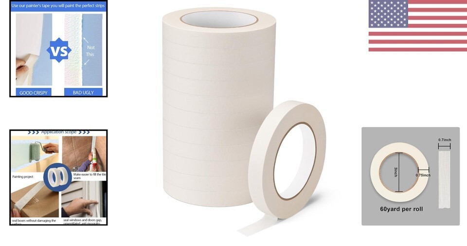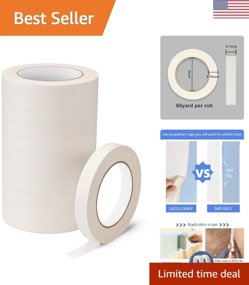 Premium Crepe Paper Masking Tape Set - High-Quality 12 Rolls, 0.7in x 60yd Each