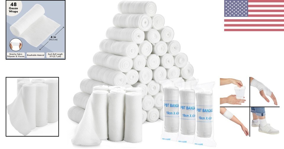 When it comes to dressing wounds and providing support for healing, our gauze wraps are the perfect choice. Made of high-quality materials, these 4-inch wide rolls are soft, comfortable, and breathable, ensuring a quick and efficient recovery process. With 48 rolls in each bulk pack, you'll always have a supply on hand for any emergency injuries that may arise. Whether for yourself, your children, or your pets, these gauze wraps are versatile and reliable for all your wound care needs.