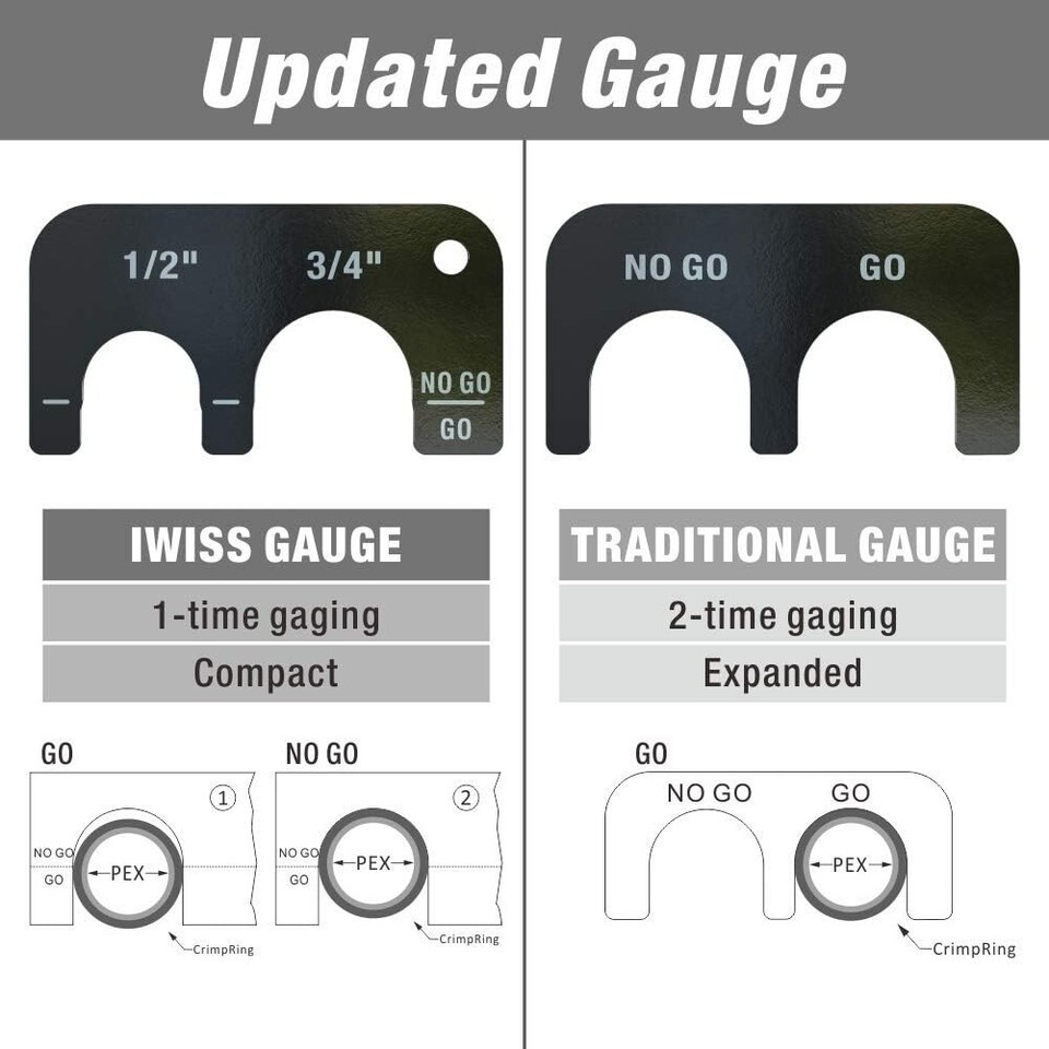 iCrimp Angle PEX Crimping Tool for 1/2-inch 3/4-inch PEX Copper Crimp Rings and Barbed PEX Fitting, c/w PEX Tubing Cutter Go/No-Go Gauge, Meets ASTM F1807 Standard PEX PlumbingTool