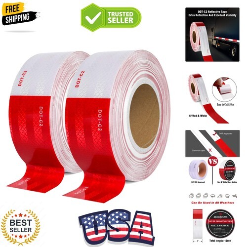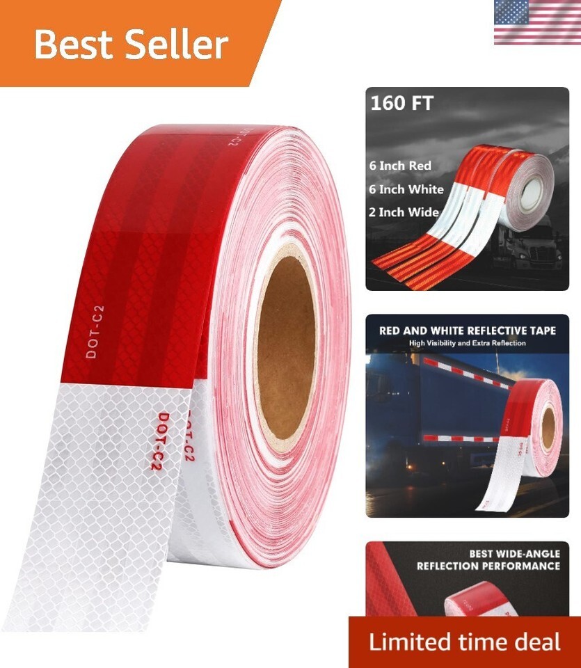 2 inch x 160Feet Reflective Safety Tape DOT-C2 Waterproof Red and White Adhesive conspicuity tape for trailer, outdoor, cars, trucks