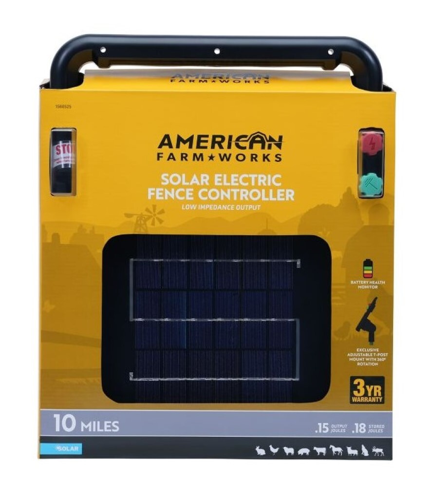 American FarmWorks ESP10MN2-AFW 0.15 Joule 10-Mile Solar-Powered Electric Fence Energizer