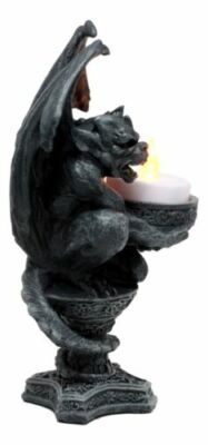 ? This is a cool fantasy themed Gargoyle Candle Holder. This gargoyle kneels in servitude holding a beacon of light in the darkness. He is the ultimate protector of the master's realm, feared by all evil spirits.