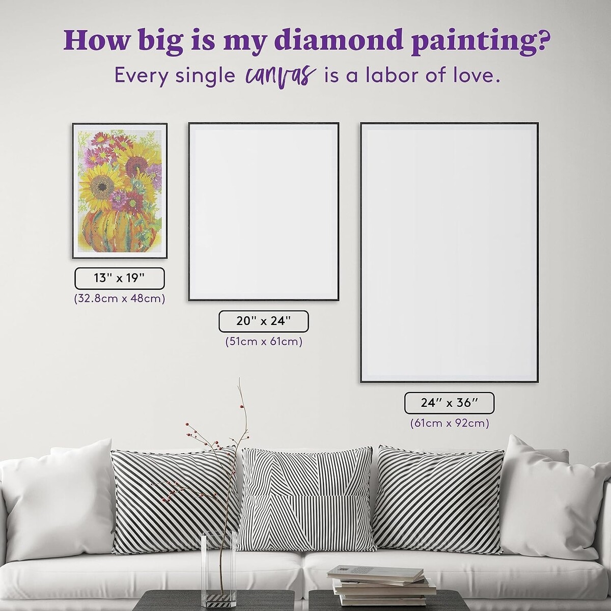 OUR UNIQUE CANVAS PROCESS: We offer premium patented canvases with licensed art and the shiniest diamonds. Each canvas is hand charted for optimum clarity. Gift this sunflower diamond art painting canvas designed by artist Gail Flores to your friends or display it on your own wall!