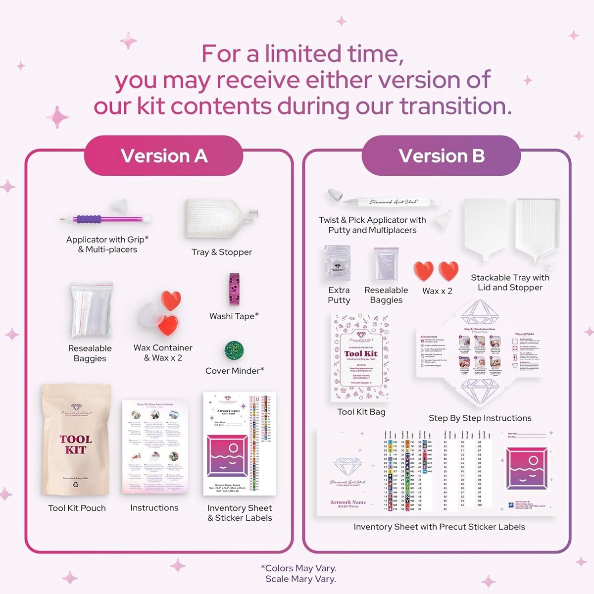 INCLUDED: A 13" x 19" ( x 48 cm) full-drill canvas, round diamonds in 38 colors with 3 aurora borealis diamonds and 1 fairy dust diamond, 1 applicator with grip, 2 multi-placers, 1 cover minder, 1 tray with stopper, 1 wax container, 2 wax pads, washi tape, resealable baggies, sticker labels, and instructions. Diamond count: 20,007.