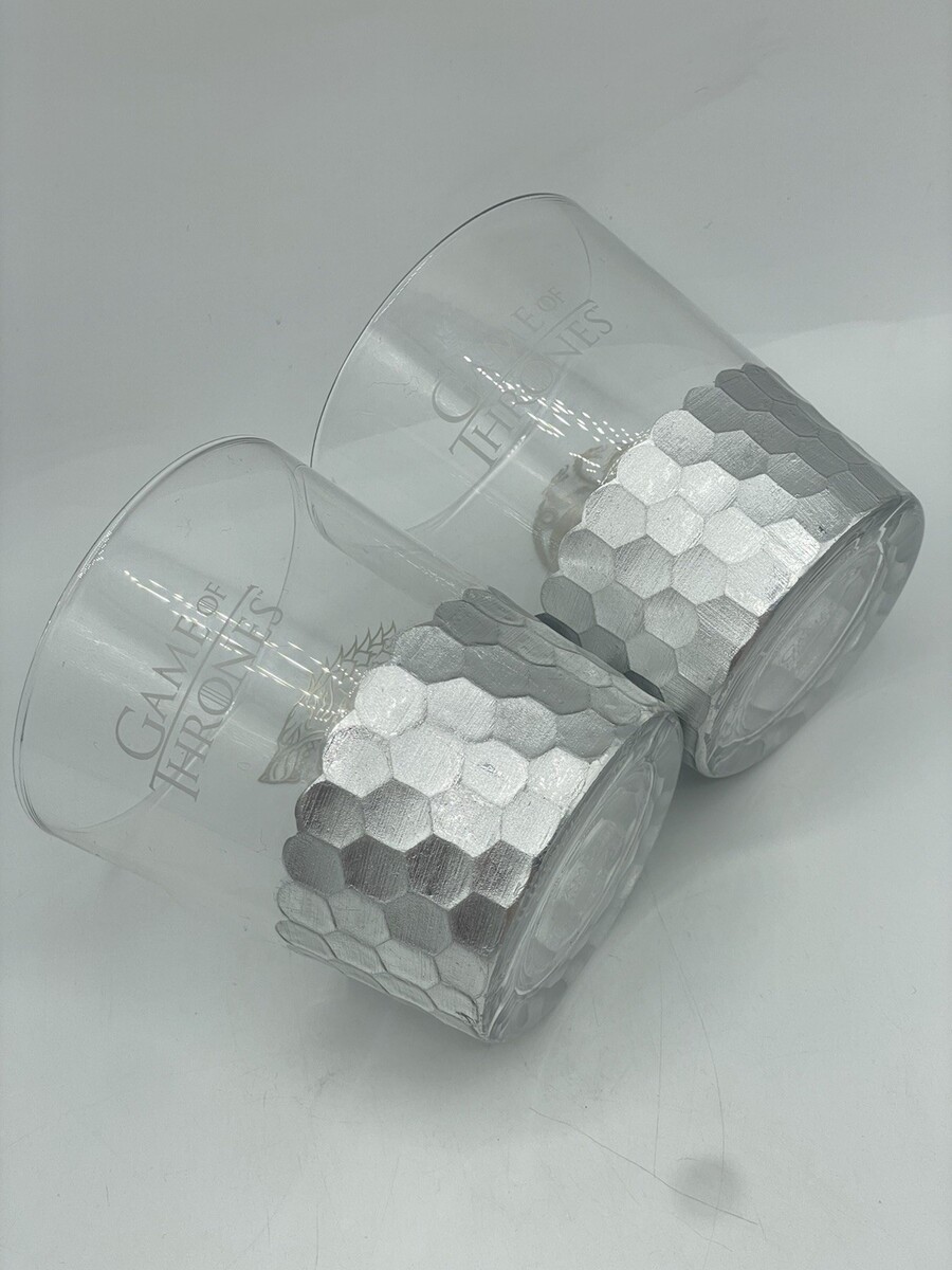 2 Game of Thrones Drinking Glasses Stark and Targaryen dragon scales HBO Bs304