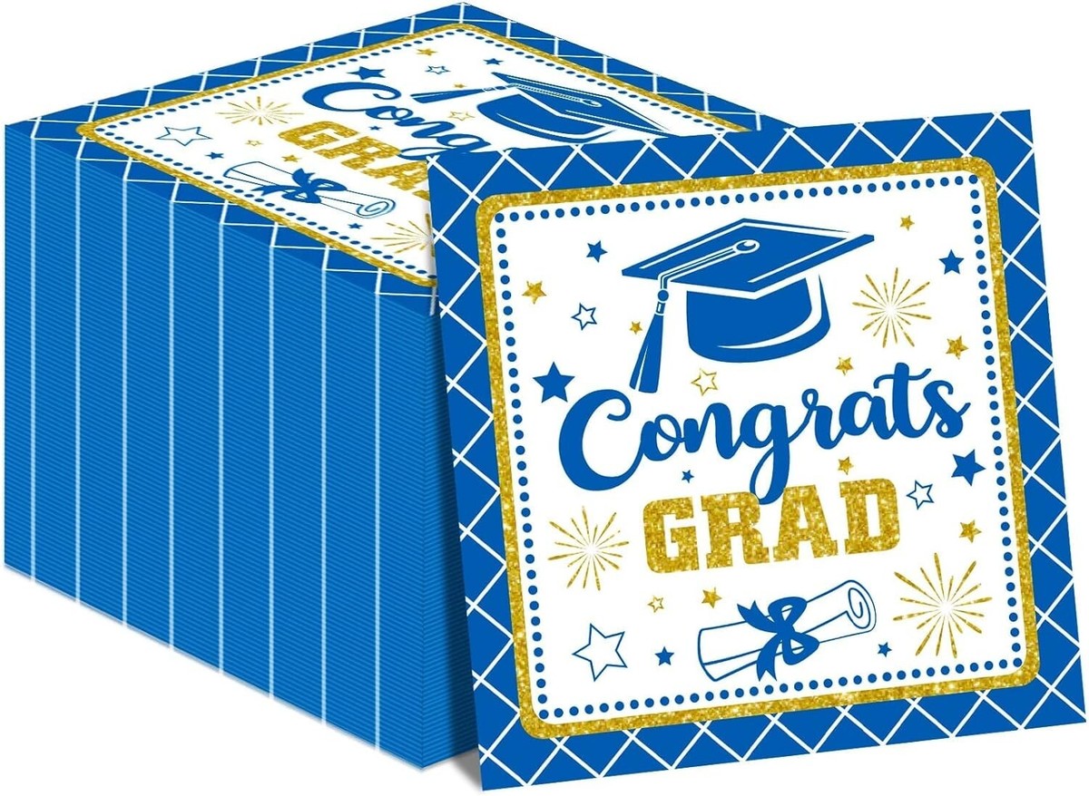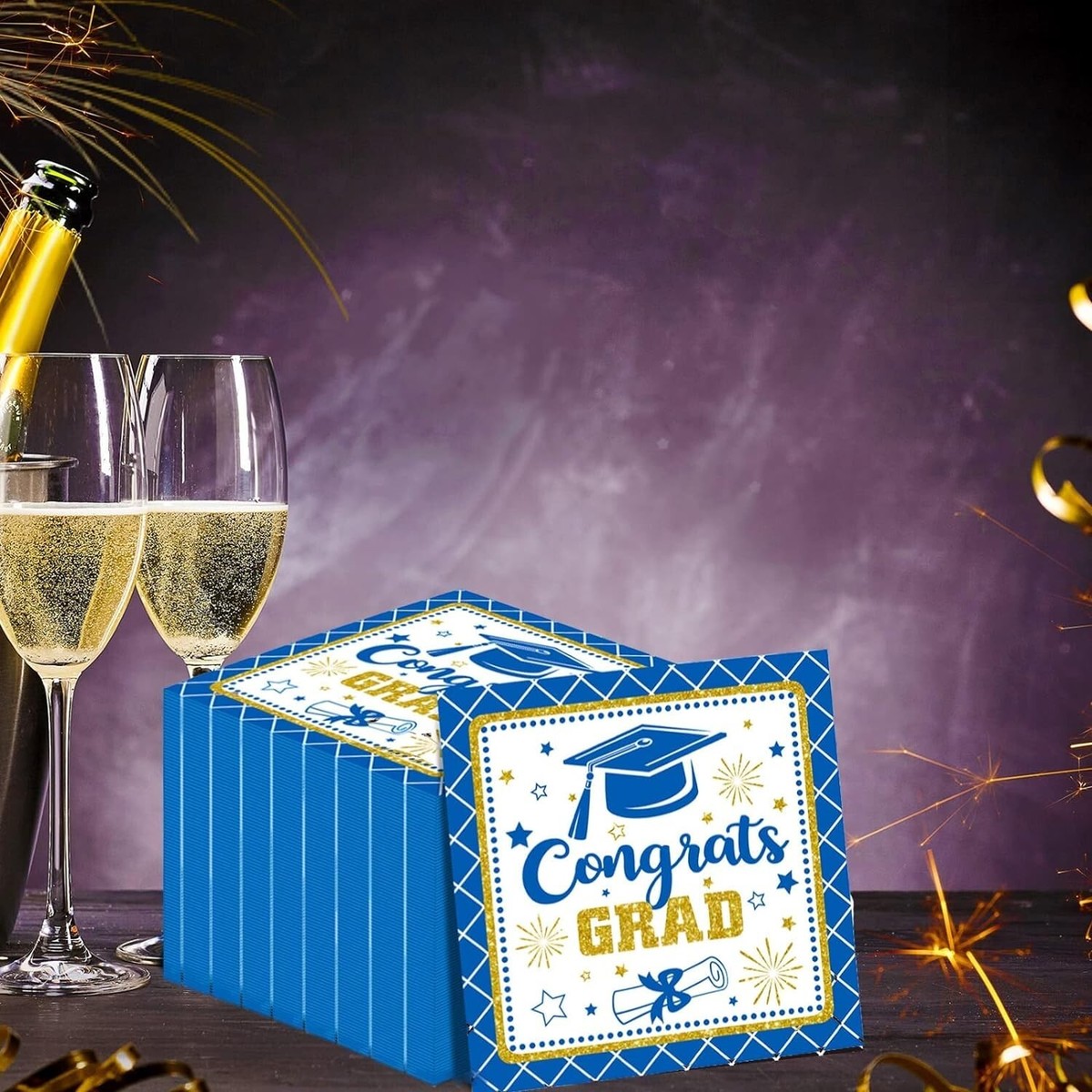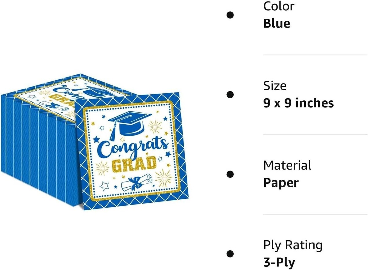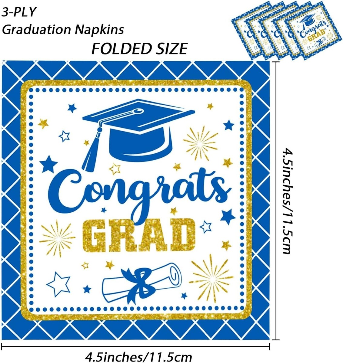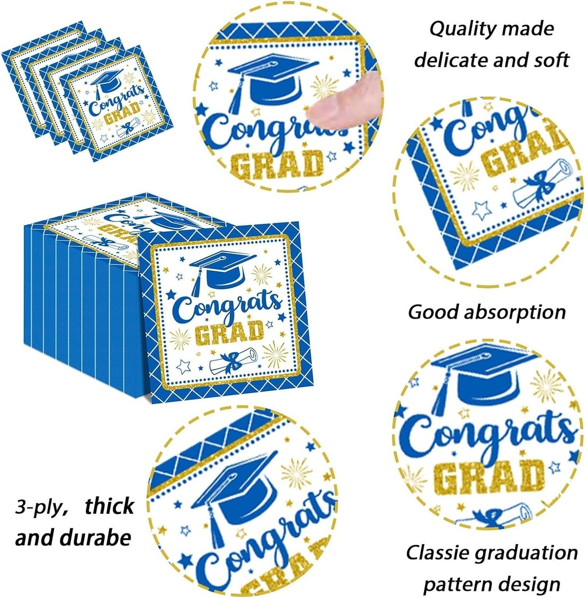 Congrats Grad Napkins for Graduation Party Supplies 2024 Blue Congratulate Gr...