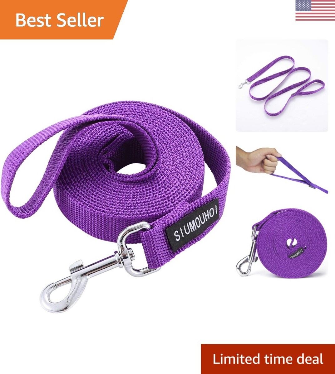 Long Purple Dog Training Leash - 15ft Nylon Traction Rope for Small-Medium Dogs