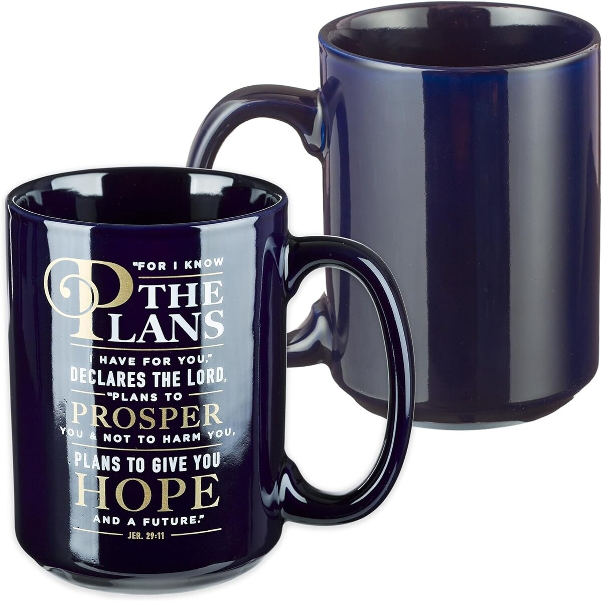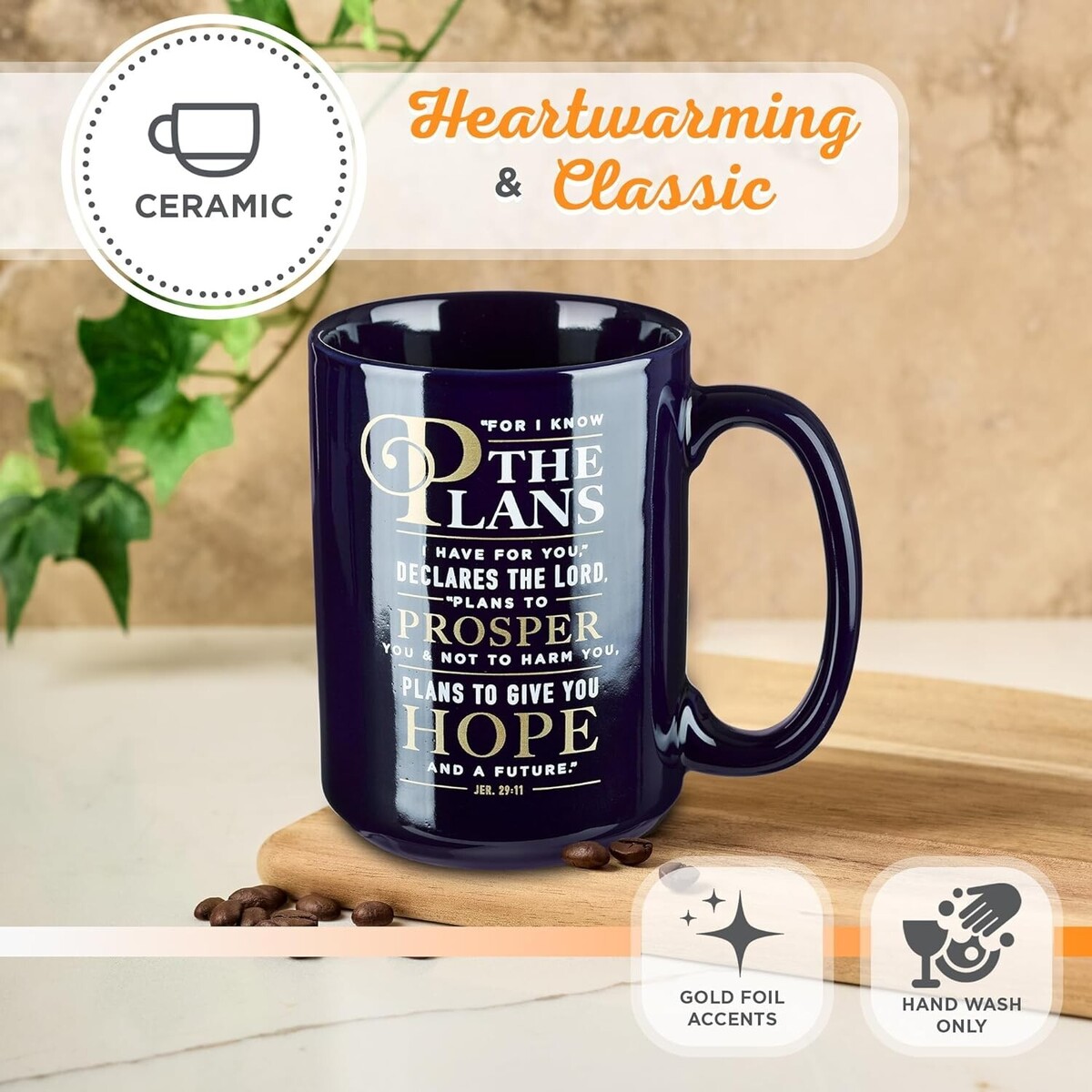 14 oz Ceramic Bible Verse Mug: I Know the Plans Jeremiah 29:11 - Navy Blue
