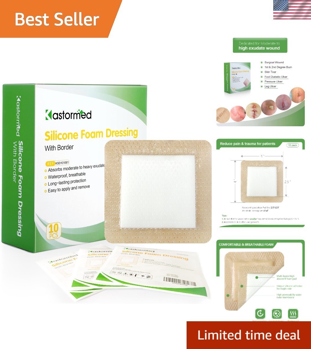Silicone Adhesive Foam Dressing with Gentle Border 4''x4'' 10 Pack, High Abso...