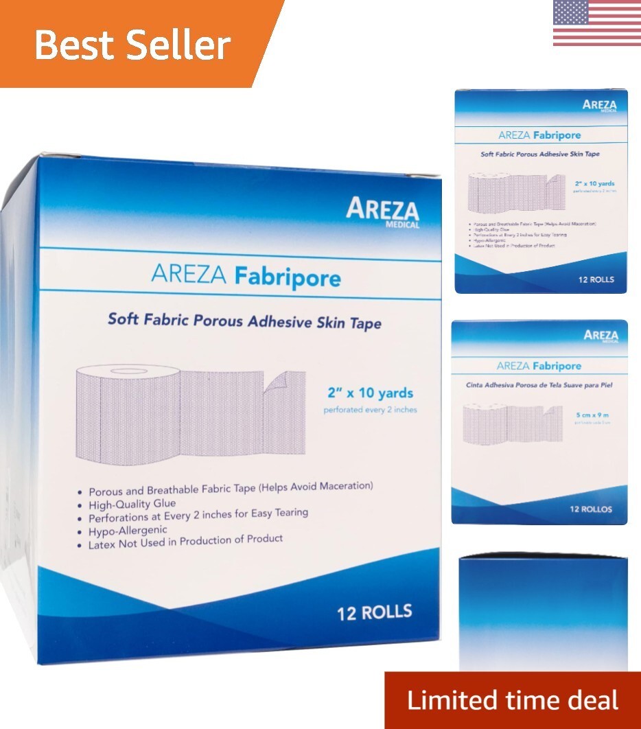 SURGICAL TAPE Porous Skin Soft Fabric Cloth Adhesive Tape 2" x 10 Yards Box of 12