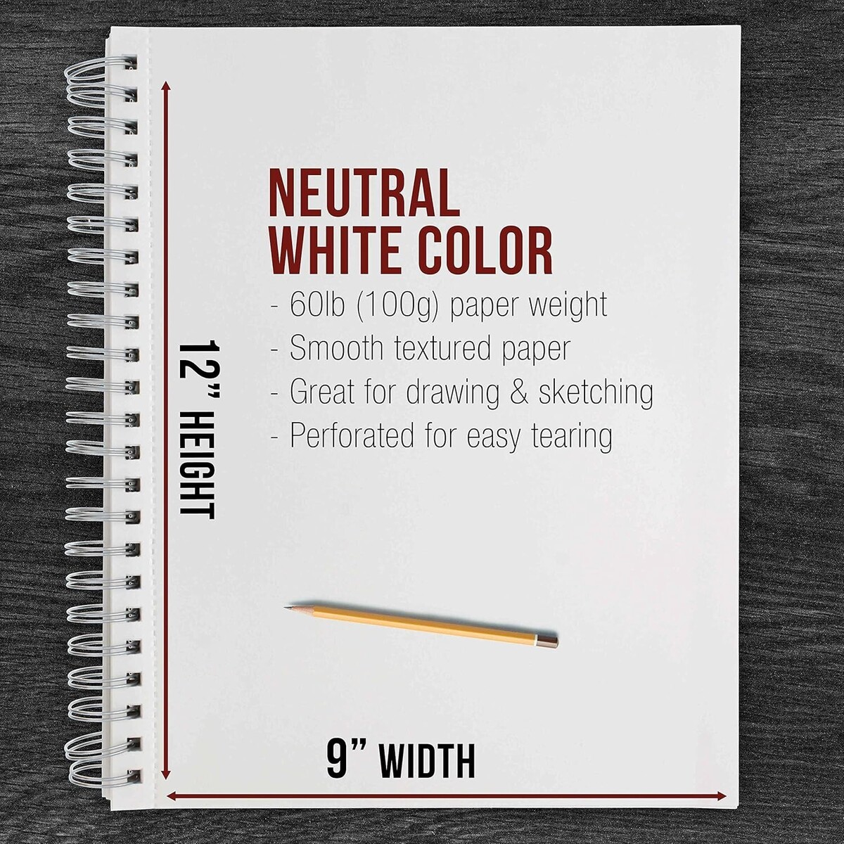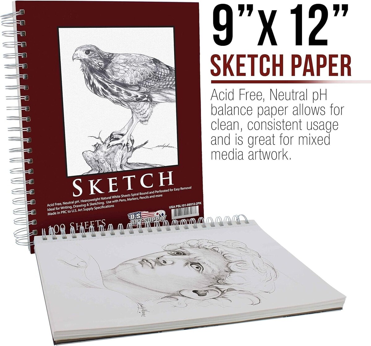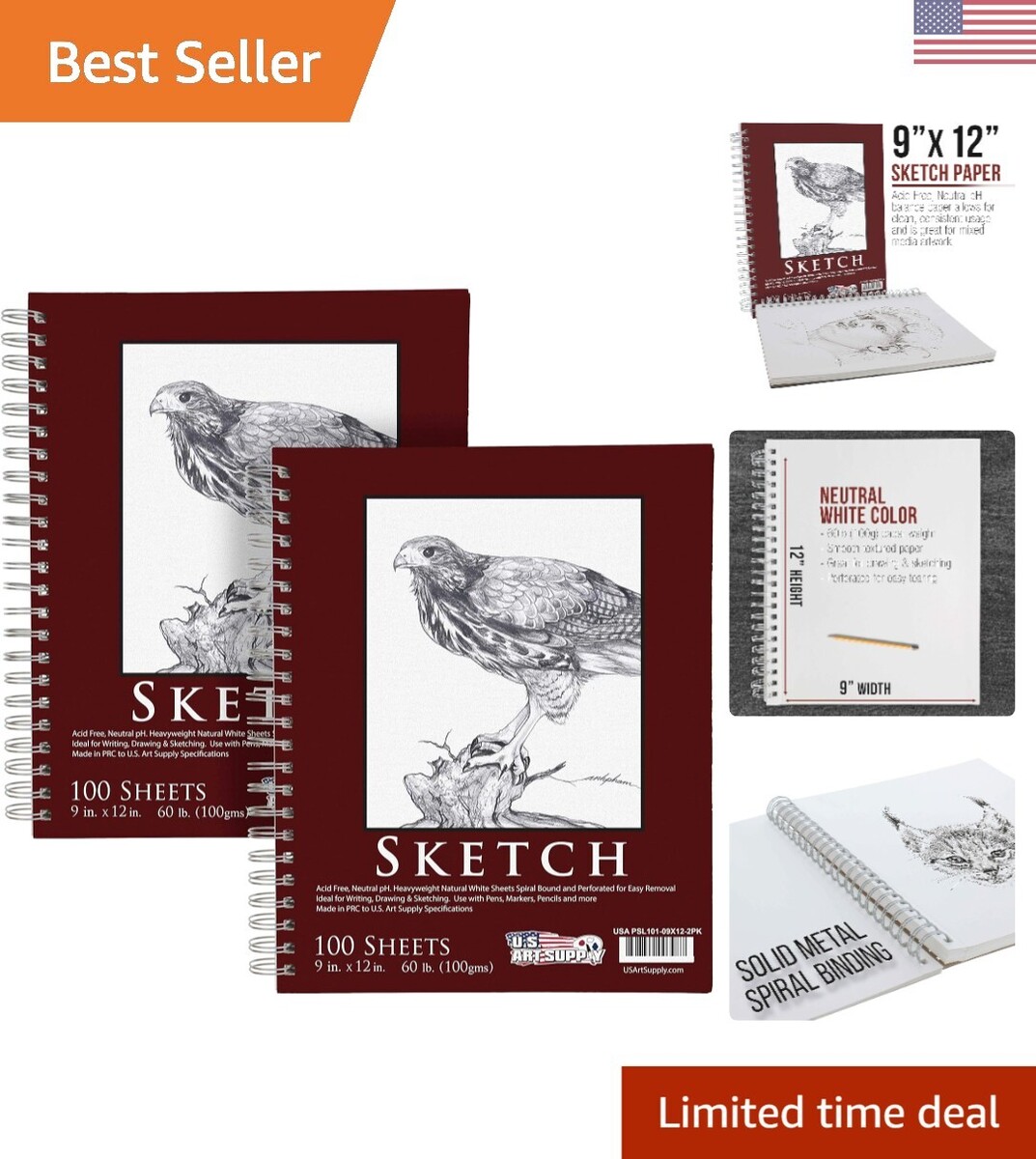 9" x 12" Sketch Book Pad, Pack of 2, 100 Sheets Each, 60lb 100gsm - Spiral Bound Artist Sketching Drawing Paper Pad, Acid-Free - Graphite Colored Pencils, Charcoal - Adults, Students