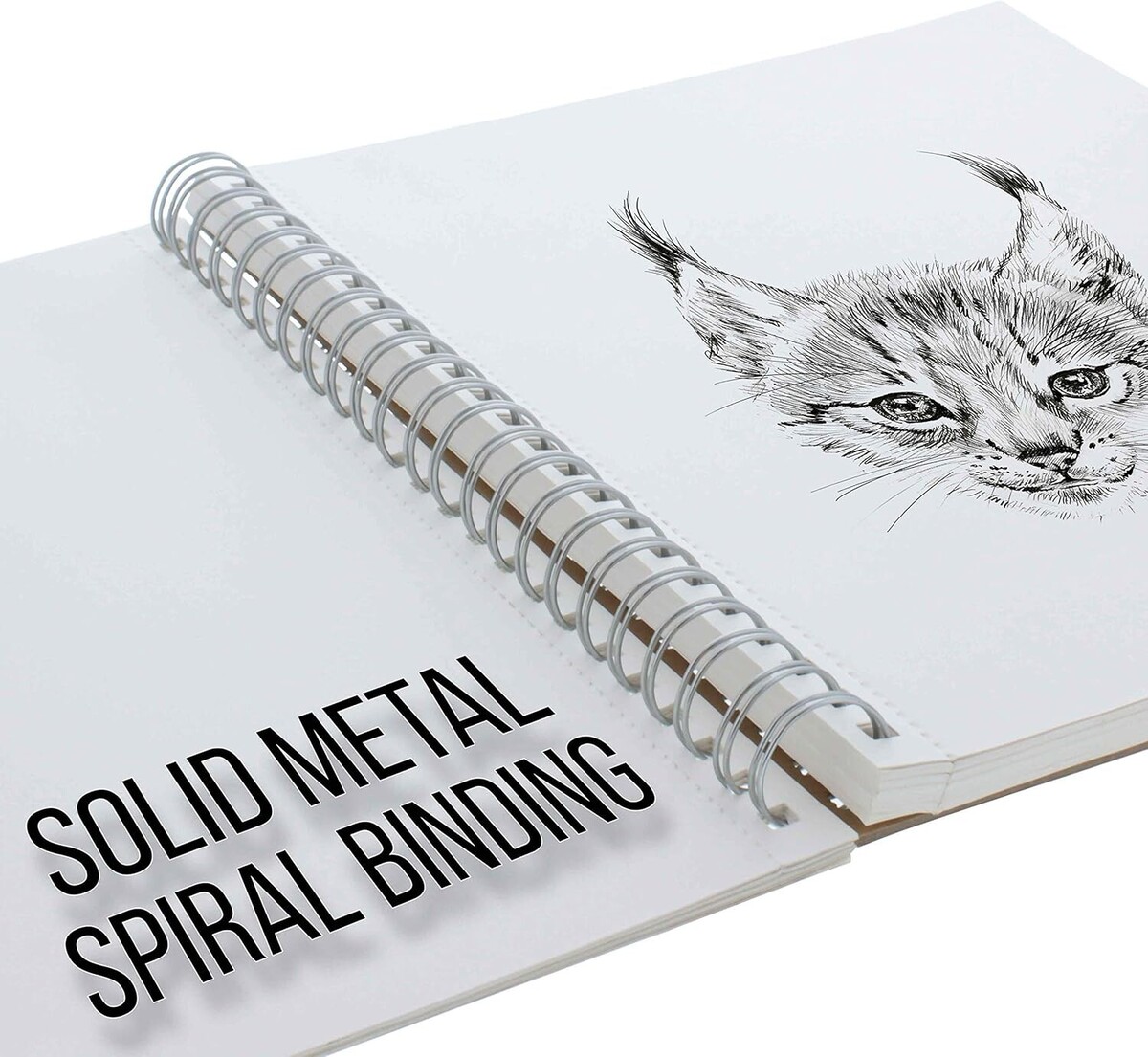 Sturdy left-hand spiral-bound sketchbooks for easy page-turning and perforated edges to easily detach the full size pages. Pads have a heavy chipboard backing and cardstock cover for extra protection. Excellent for kids and adults to create artwork or develop and practice their skills.