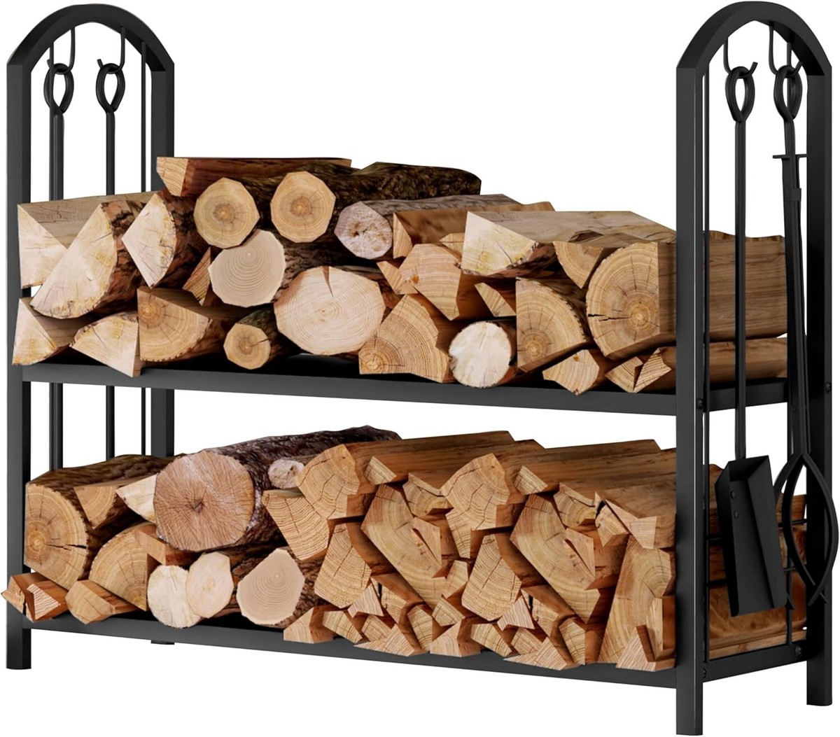 Indoor/Outdoor use: This compact vertical firewood tools rack with built-in tool holders is ideal for your indoor fireplace or outdoor fire pit. It can be used for wood log storage and features hooks for your fireside tools. The Fireplace Tool Rack Set provides a convenient and attractive solution for keeping your firewood and tools neatly organized in one place. This firewood tools rack set package includes everything you need for a well-maintained and visually appealing hearth.