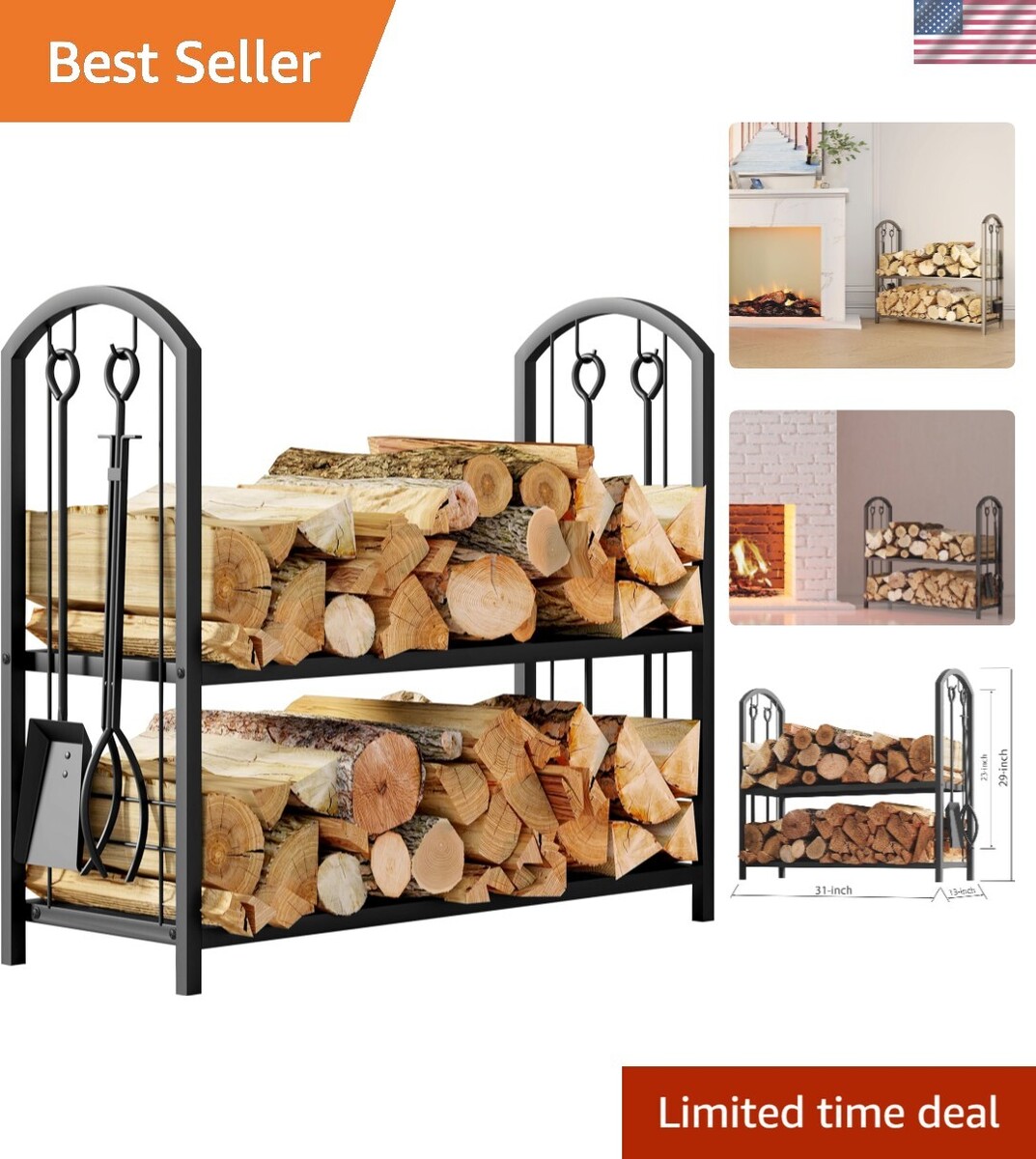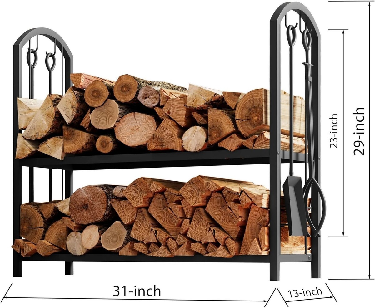 Storage capacity - The firewood rack dimensions of 31"x13"x29" Robust metal brackets create a solid frame, providing ample space for 2" high base allows for optimal air circulation, keeping the firewood storage dry and ready for use.