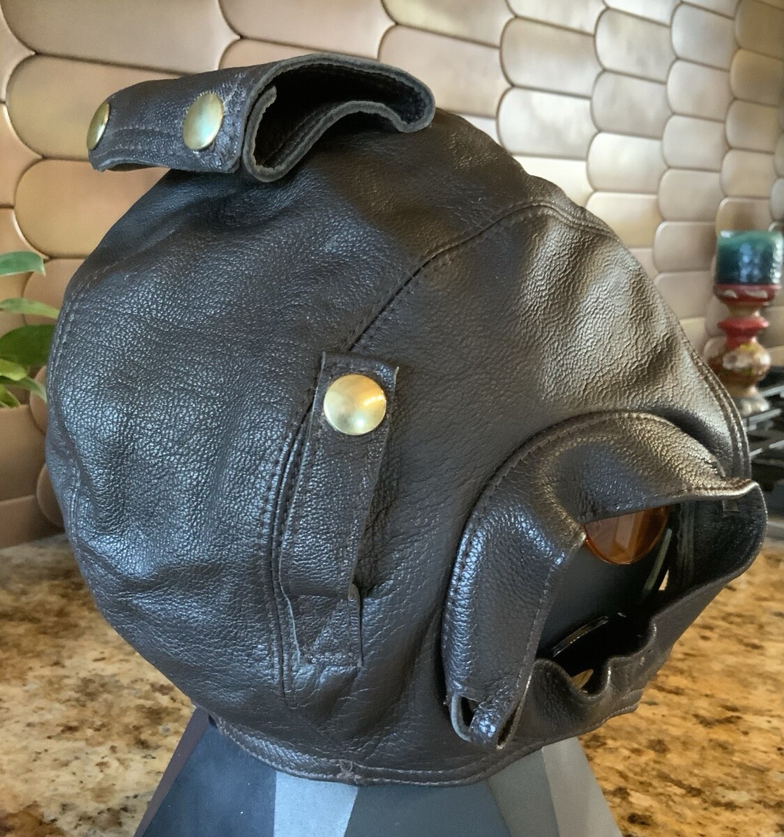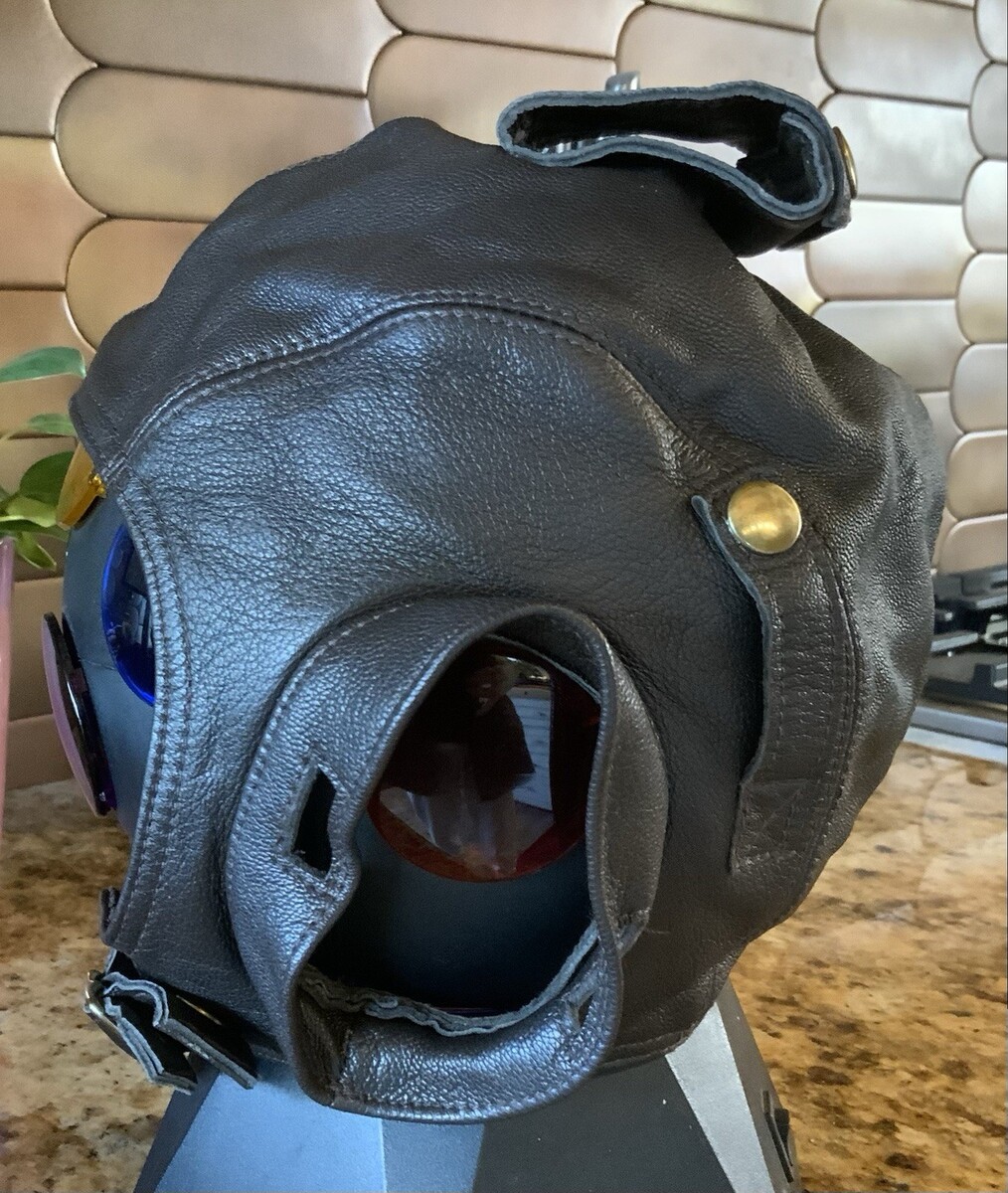 Flight Suits Ltd Brown LEATHER & Suede Flying Open Cockpit HELMET Cap Sz XX-LG