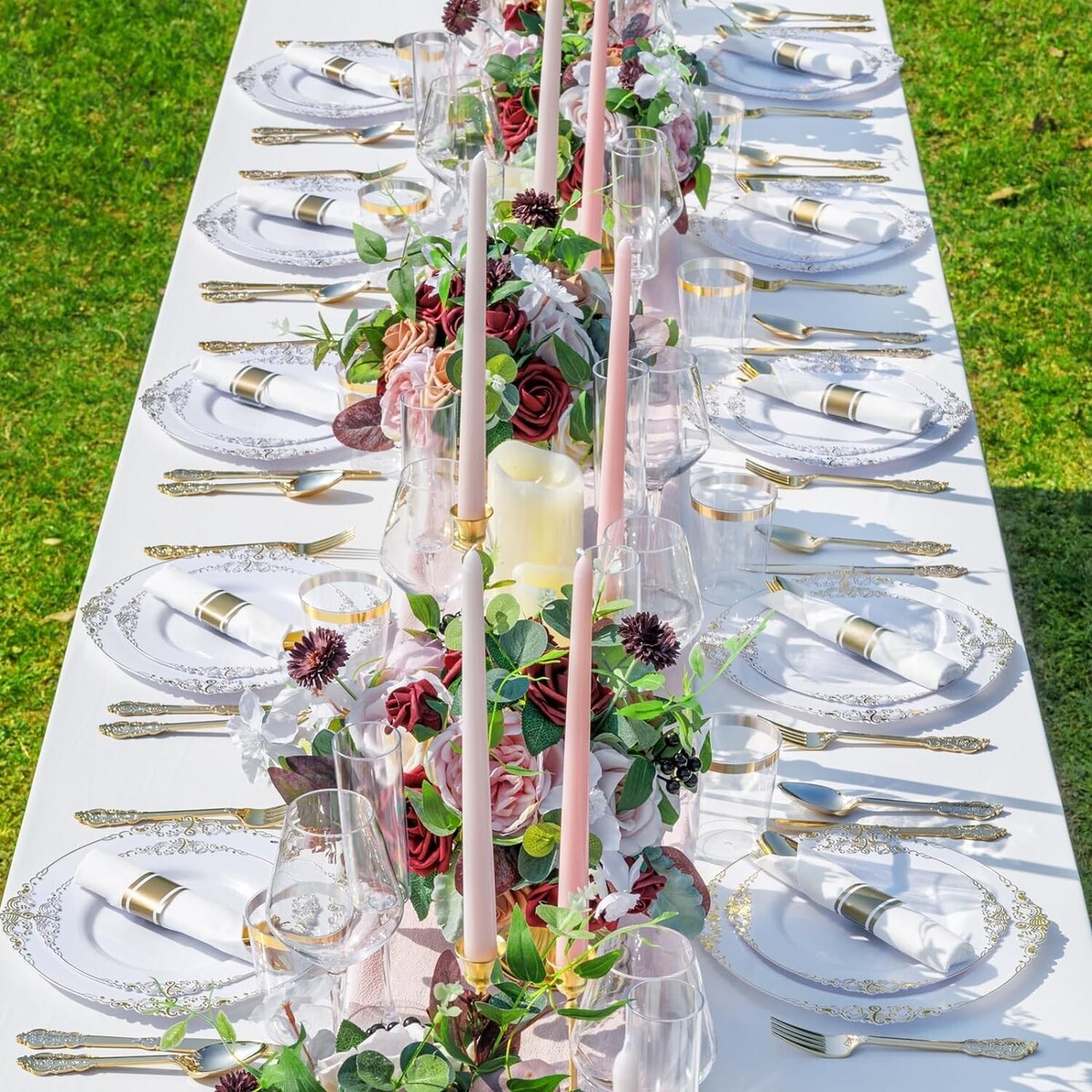 Reusable Convenience: White with gold rim plates can be reused and will look as good as new after washing. White plastic plates are also disposable plates, so they can be discarded after use, which is very convenient to use, saving time and eliminating the need to wash dishes. I hope our white gold plastic plates can bring you a good use experience and bring you a convenient life.
