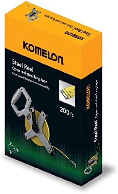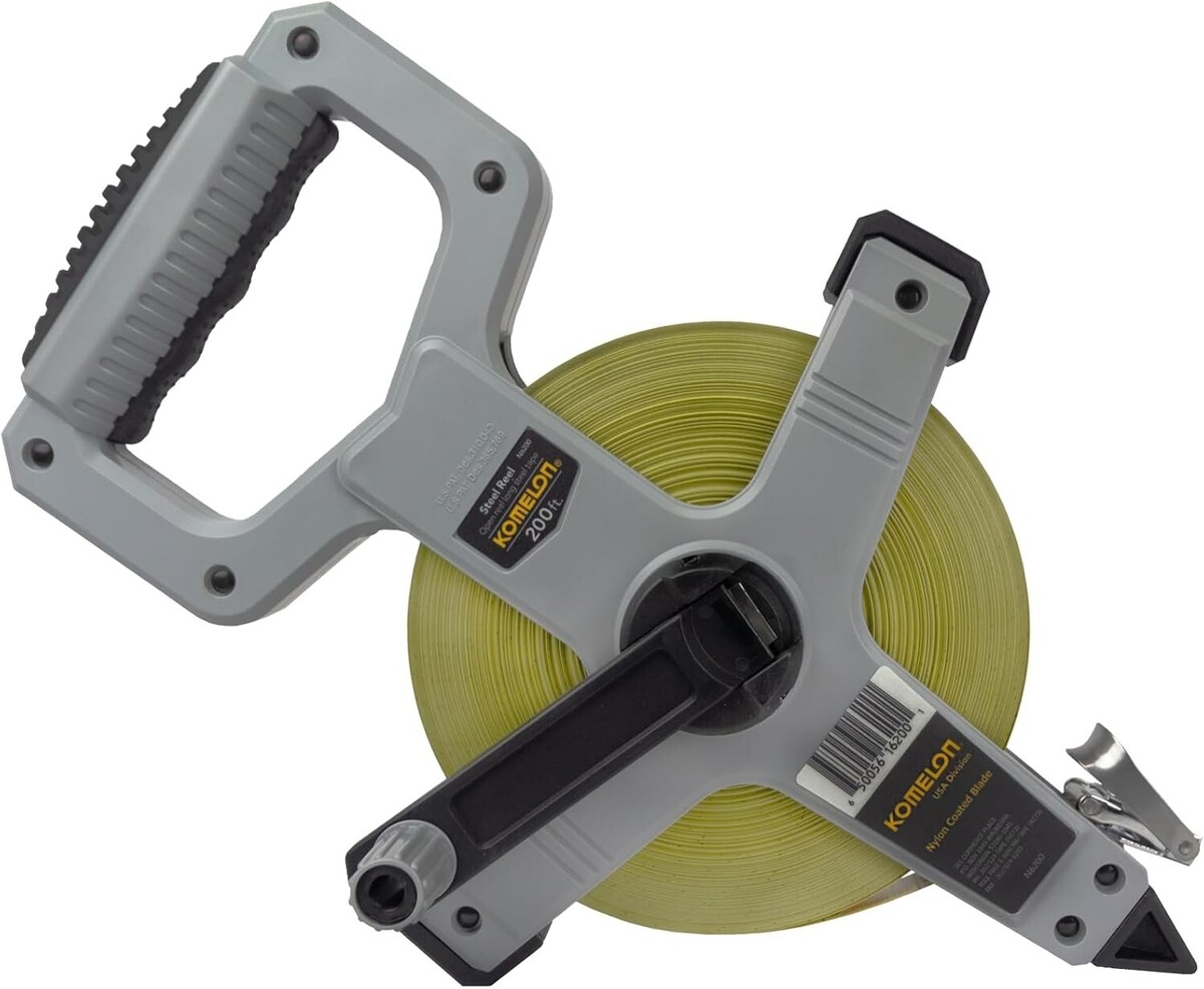 Impact-resistant ABS frame. ^ Comfortable rubber handle grip and crank handle. ^ Nylon coated blade for maximum durability.^200-Feet by 1/2-Inch open reel steel tape^Durable nylon coated blade^Heavy duty ABS frame^Shock absorbing rubber bumpers