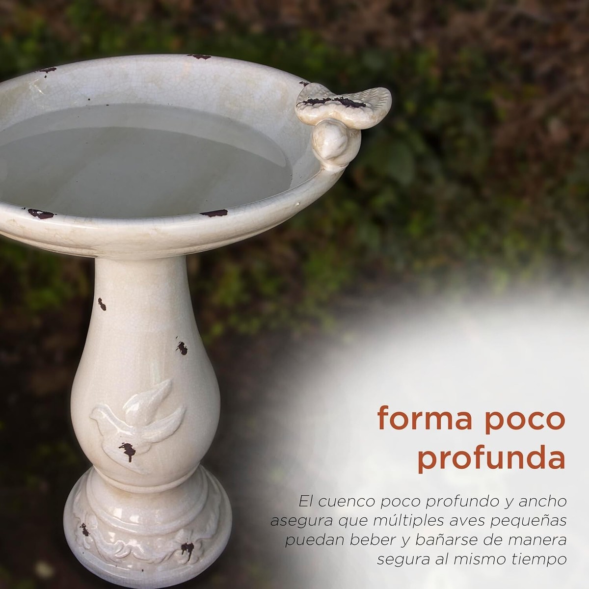 SHALLOW SHAPE: Shallow and wide bowl assures that multiple small birds can drink and bathe safely at the same time