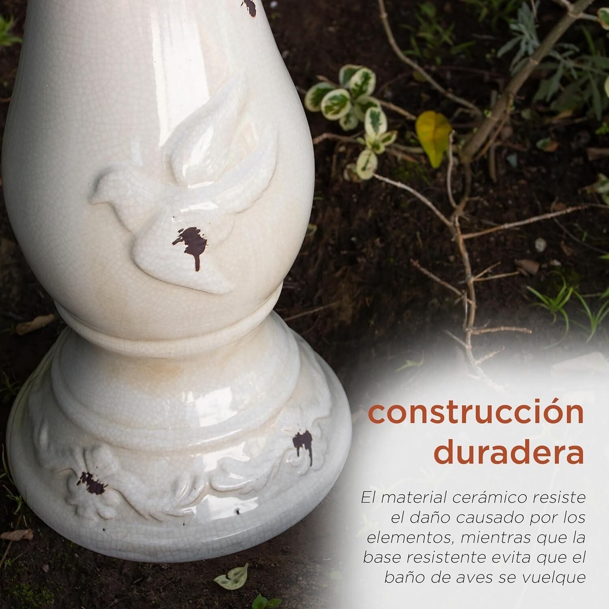 DURABLE CONSTRUCTION: Ceramic material resists damage from the elements while the sturdy base prevents the birdbath from tipping over
