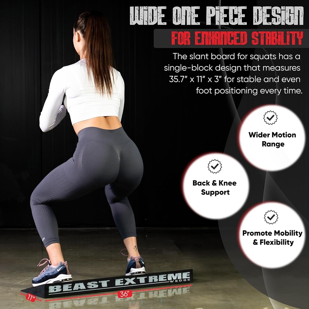 Wider design for improved stability during exercises such as squats and more advanced movements like sumo squats