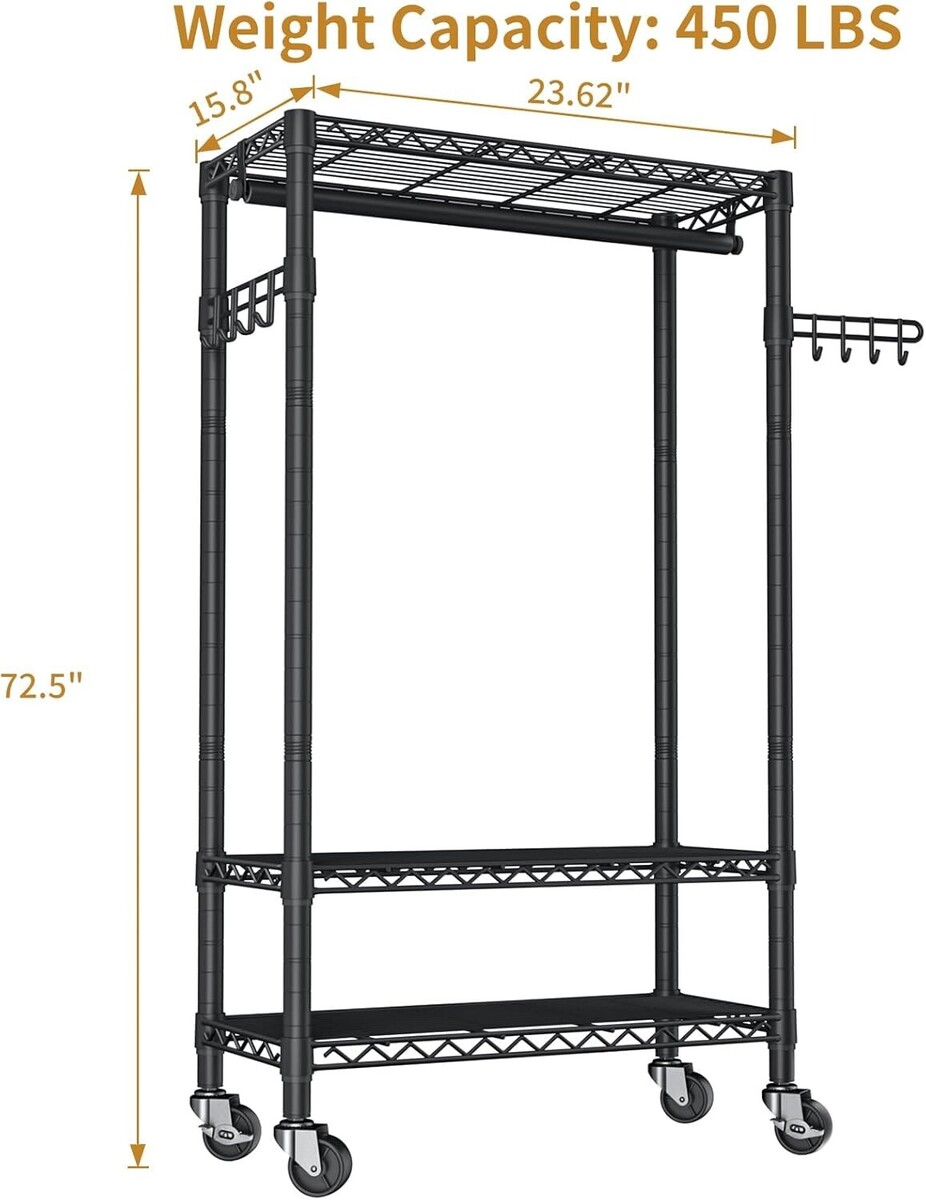 360 lbs Capacity Heavy Duty Rolling Garment Rack with Adjustable Features