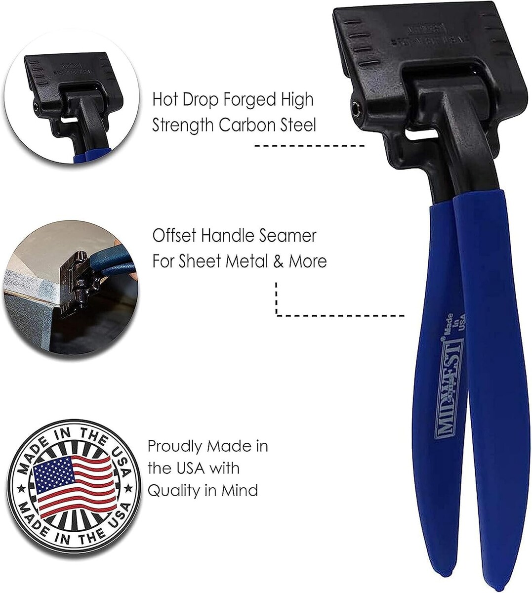 MIDWEST Seamer Tong - 3 Inch Offset Sheet Metal Bender with Forged Blades & K...
