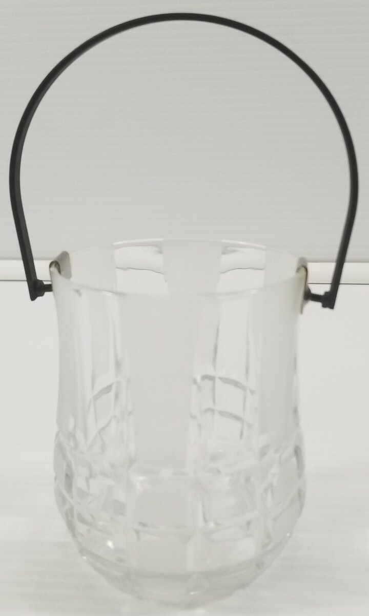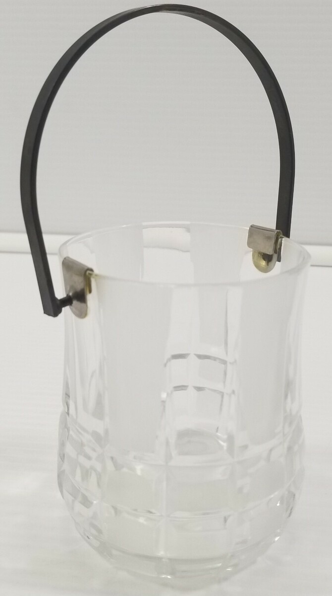 BB) Vintage Mini Frosted/Clear Glass Ice Bucket with Handle Italy