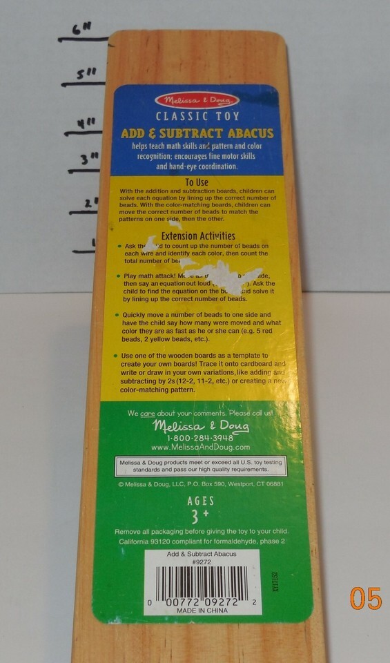 For Sale is a Melissa Doug Add And Subtract Abacus 19272. it in good Used condition as seen in the pictures provided what you see is what you will receive. Please ask Any and All Questions prior to purchasing. Fast Same or Next day shipping with Free Delivery Confirmation within the U.S. Payment Due within 7 days of purchase (if you need more time please let us know In advance) we love to combine shipping is always a Yes and Most of the time Additional Items Ship for free.