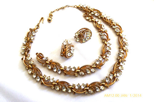Vintage Signed CROWN TRIFARI Black Faceted and similar items