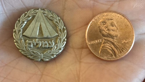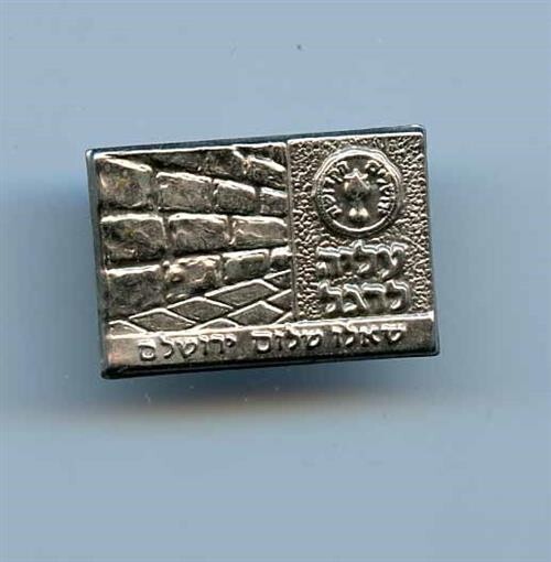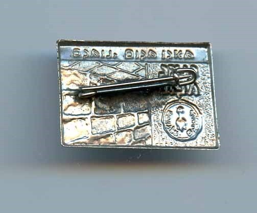 An embossed metal pin Has image of the Western Wall. Measures about 1 1/8" x 3/4". Israel Pin with Ancient Jerusalem ,Pilgrimage and Pray for the Peace of Jerusalem in Hebrew. .